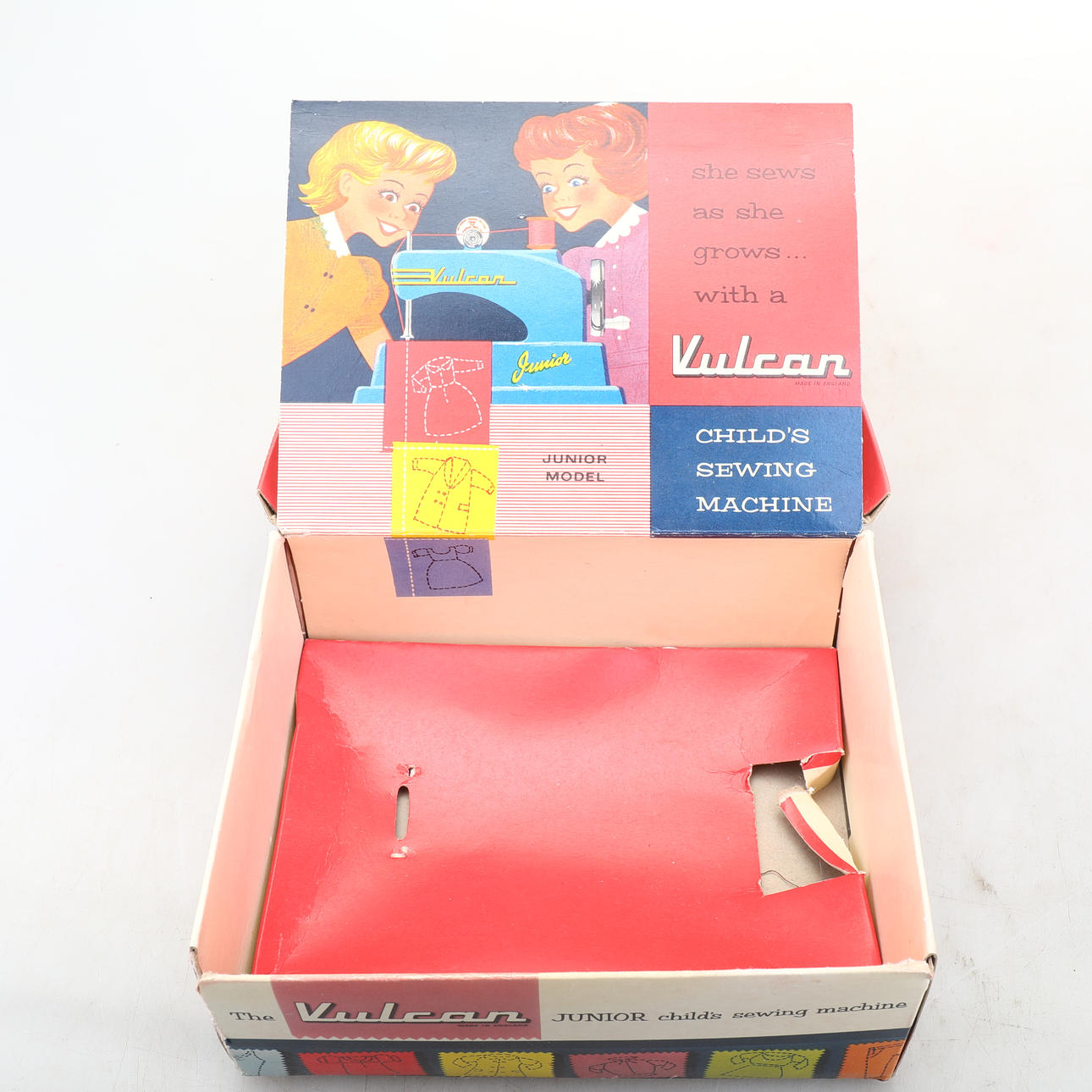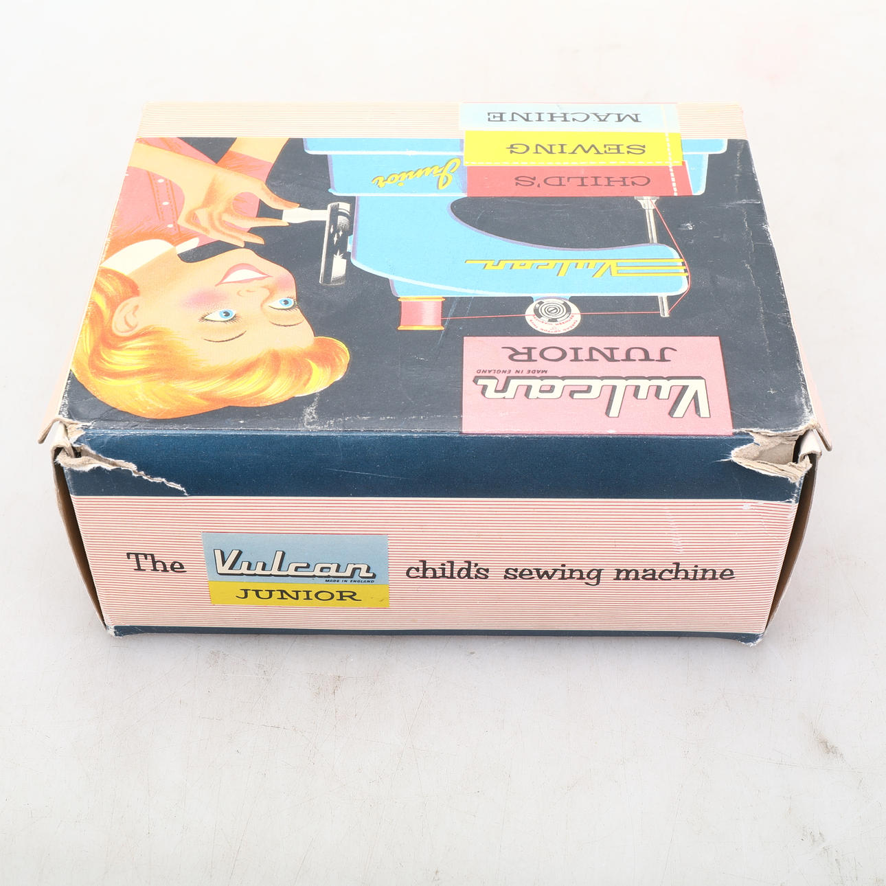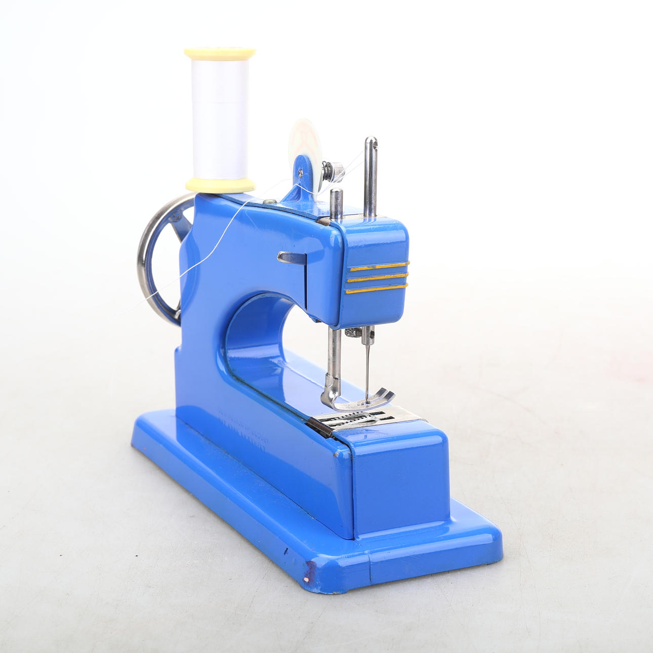 Symaskin i originalförpackning. Made in England. Höjd ca 12 cm. Längd ca 19 cm.