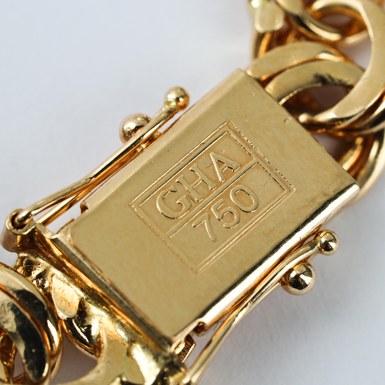 Bismarck-länk, kistlås, säkerhetshakar. Längd ca 19 cm. Vikt ca 29,1 g. Ask medföljer.
