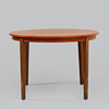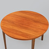 Skiva i valnöt, diameter ca 105, iläggsskiva ca 52, höjd ca 72 cm.