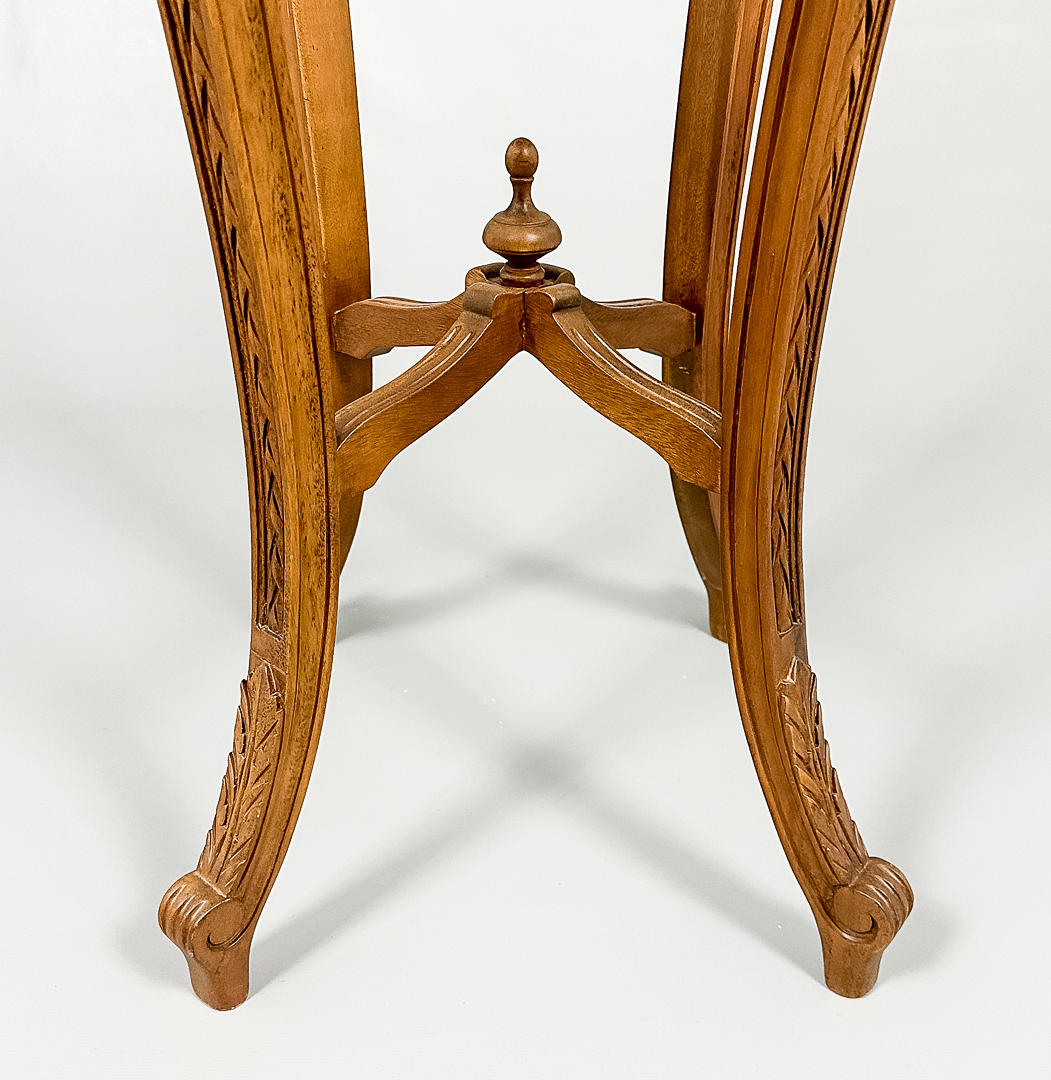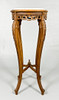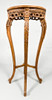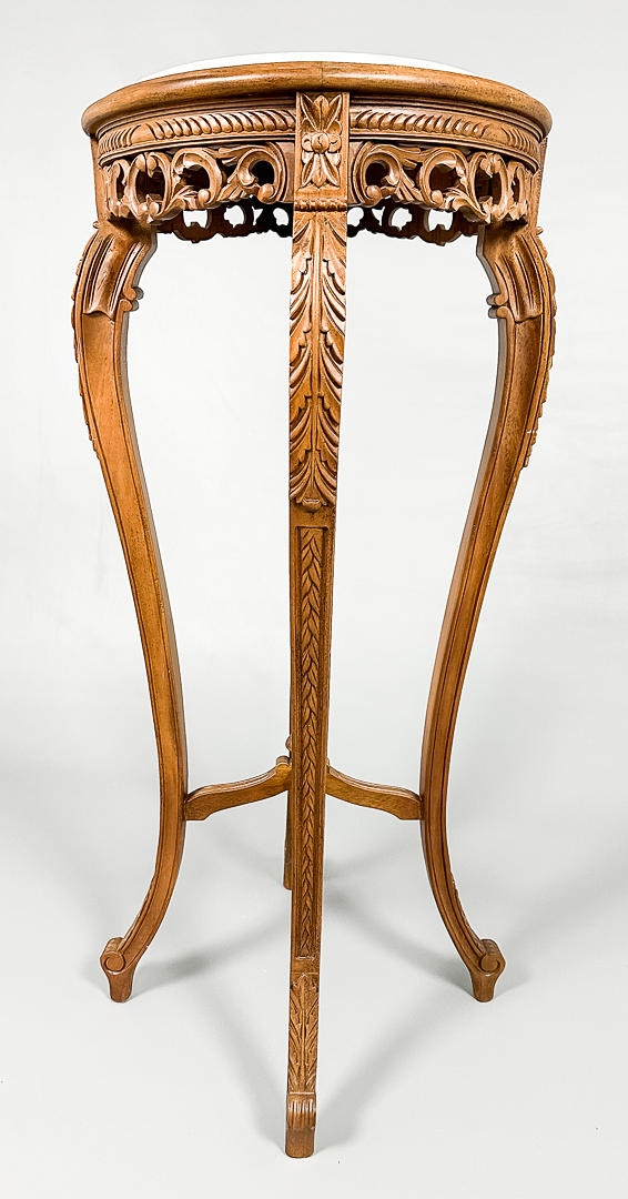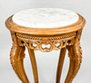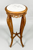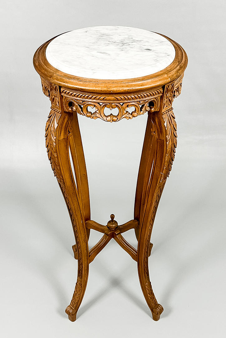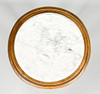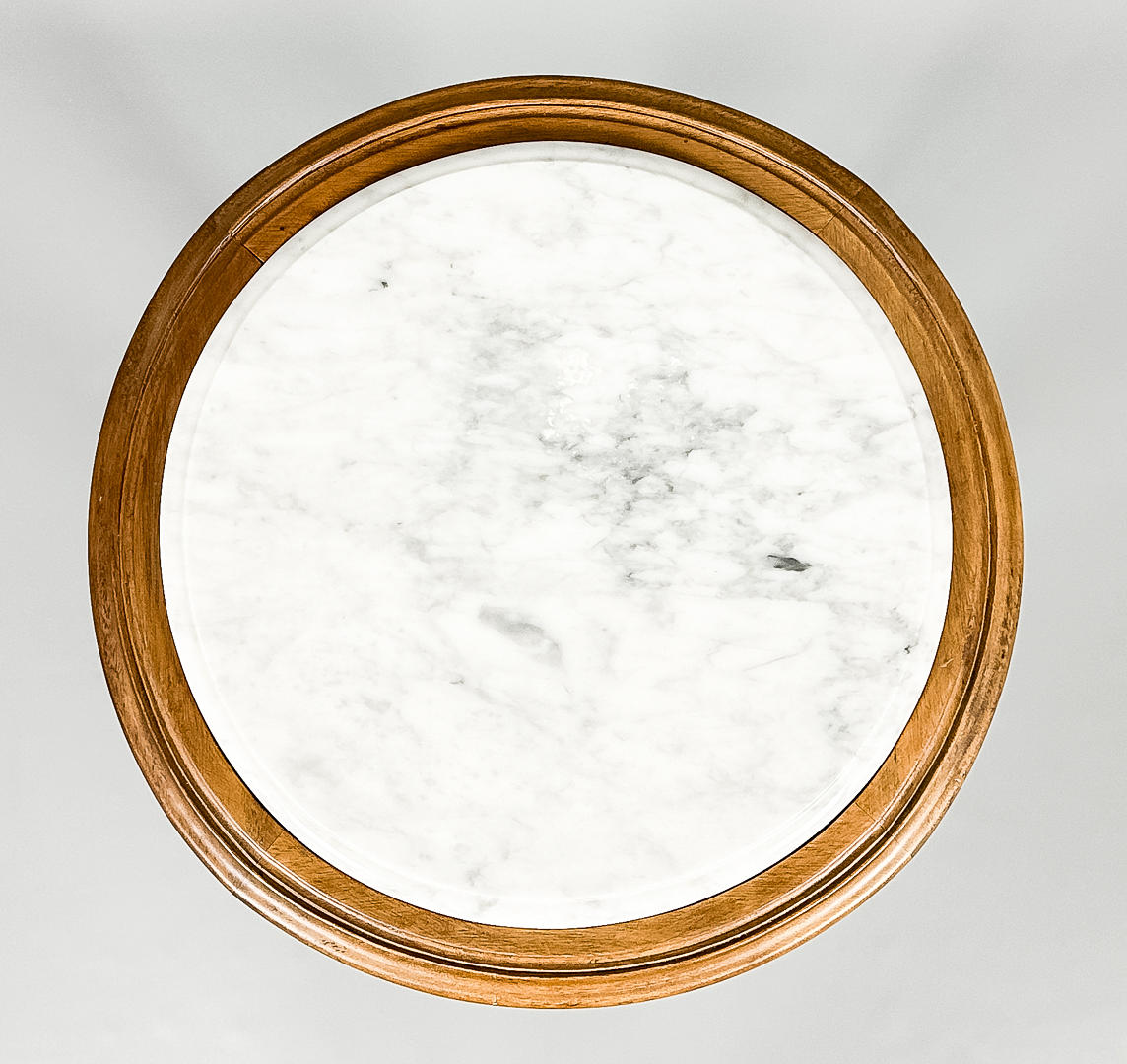 Ljus marmorskiva med diameter 32 cm, total 39 cm, höjd ca 93 cm.