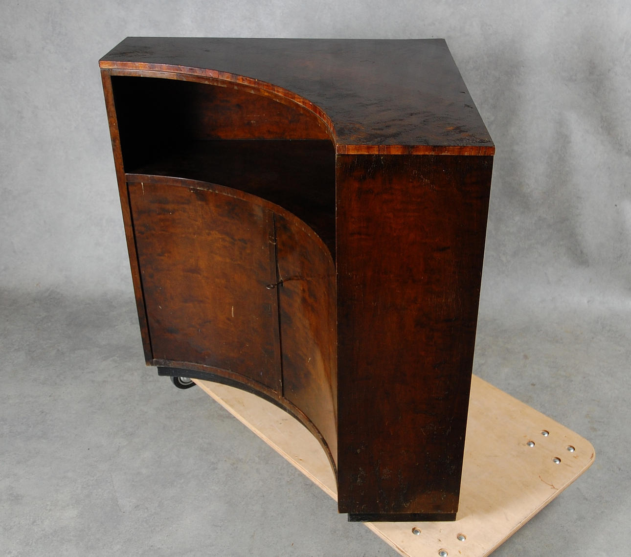 Bruksslitage, stötmärke, fanérsläpp, krackelering Hål bakstycke.