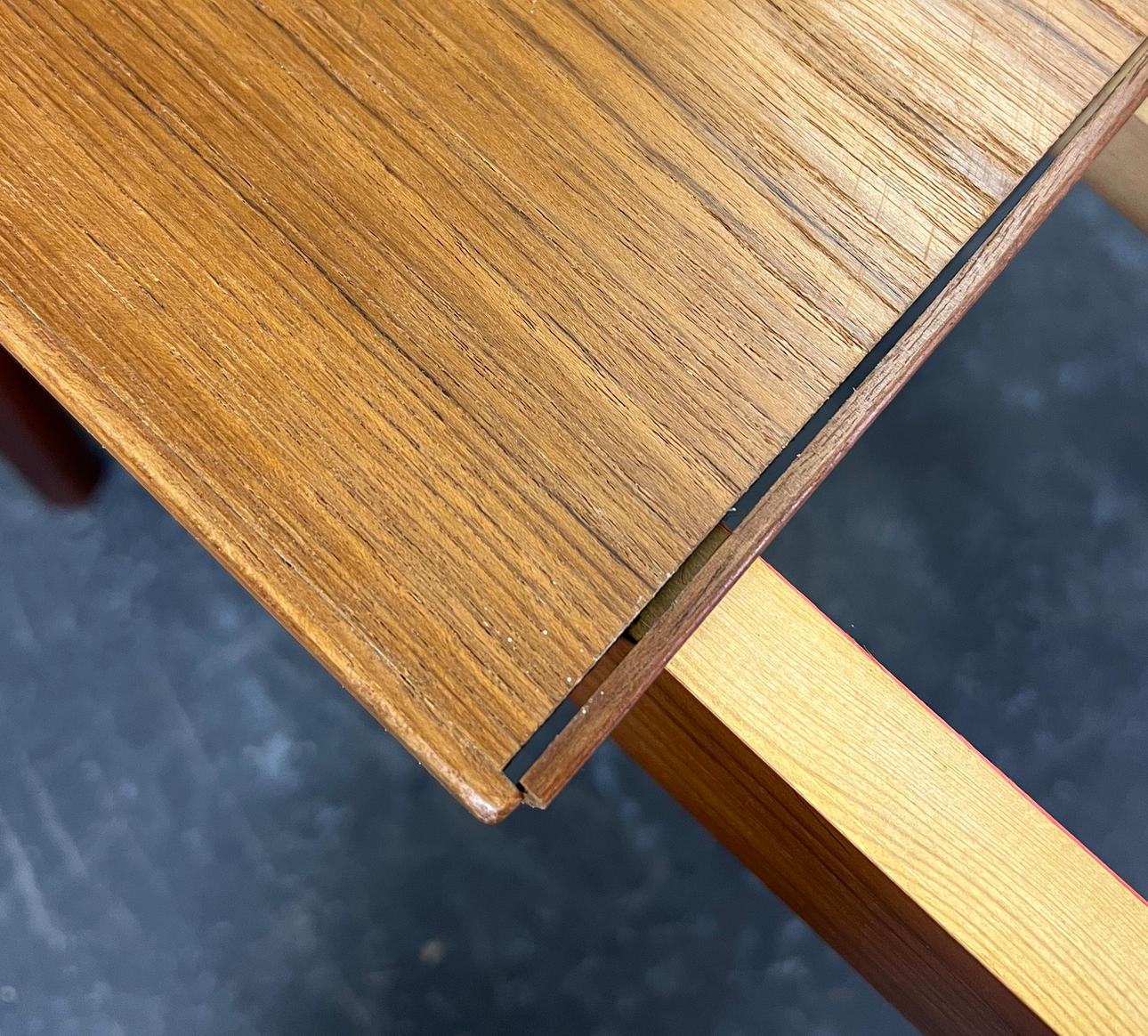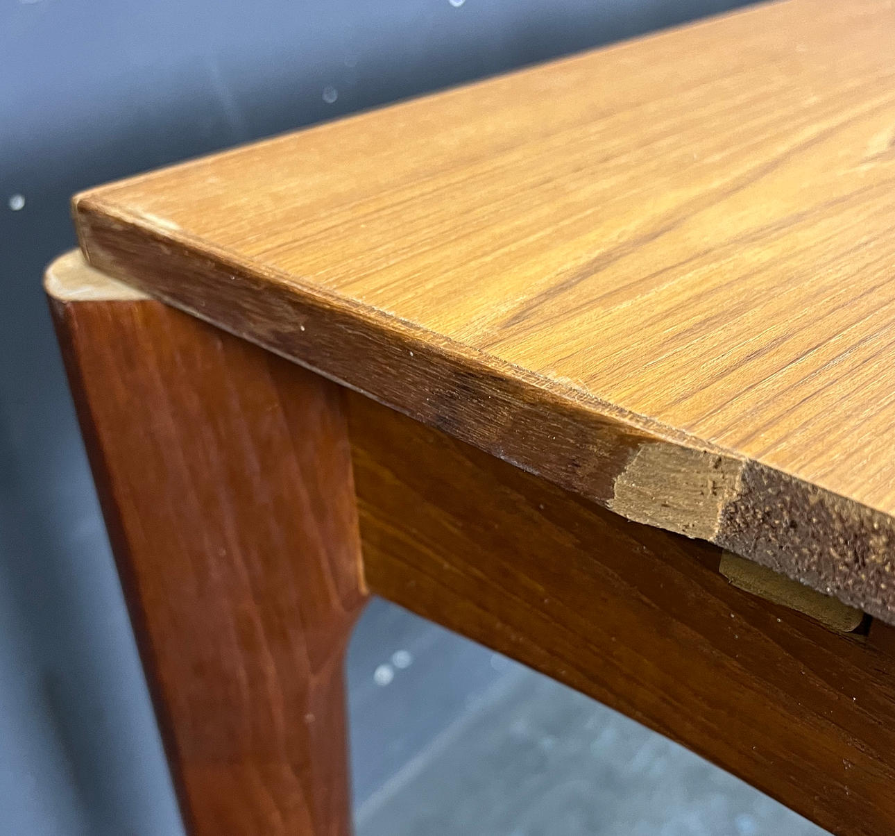 Normala tecken på slitage på bordsskivan.