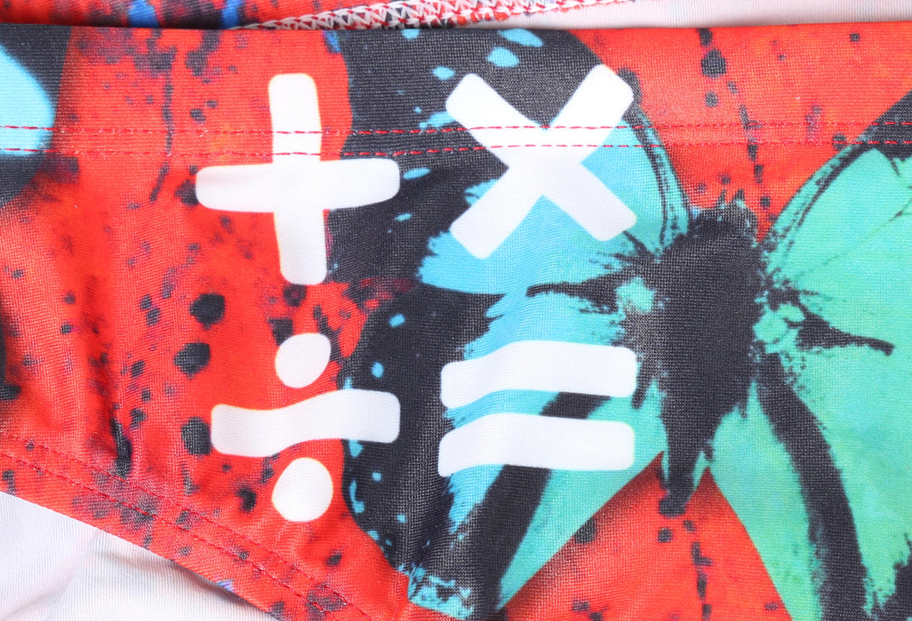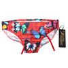 I rött, med fjärilsdesign, storlek 34.