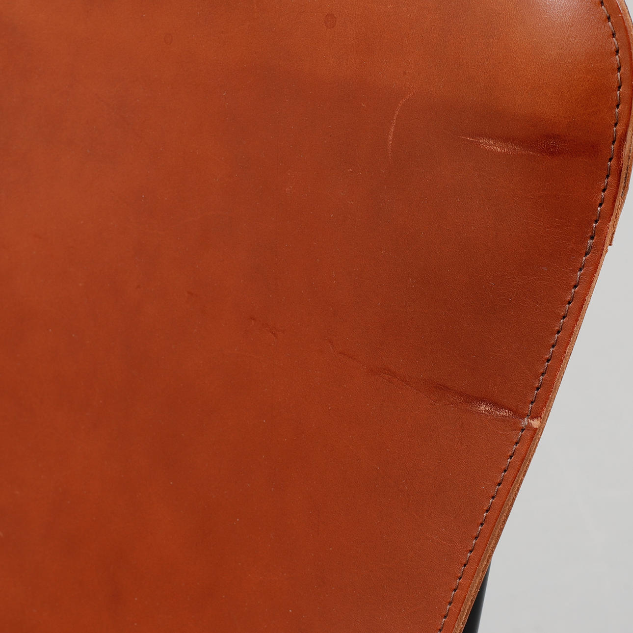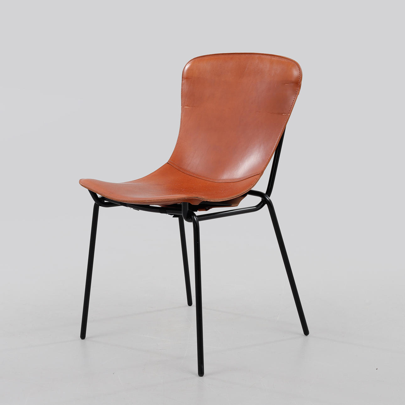 Stomme i svärtad metall. Klädd i brunt läder. Sitthöjd 47 cm.