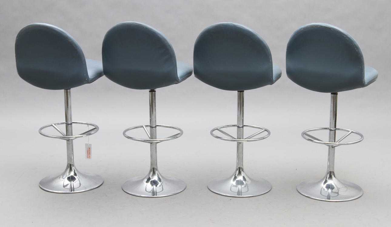 35187. BARSTOLAR, 4 st, krom och gråblått skinn.