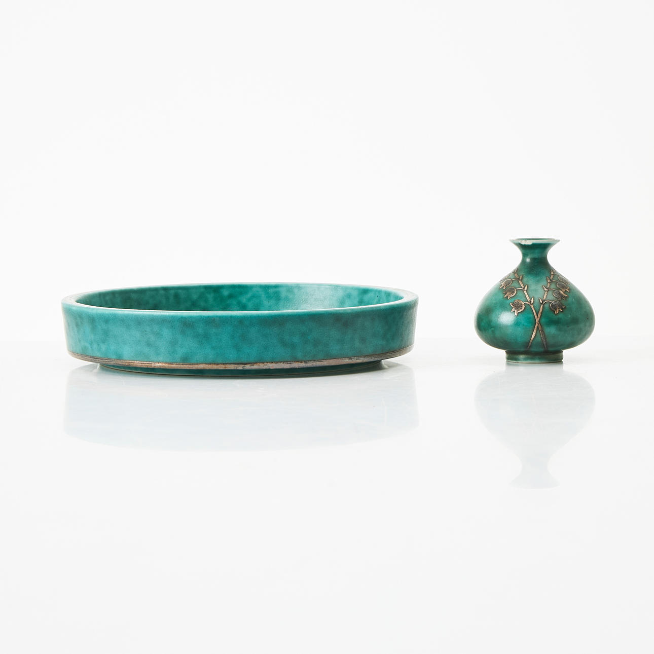 WILHELM KÅGE. Argenta, 3 delar, vas och 2 fat.