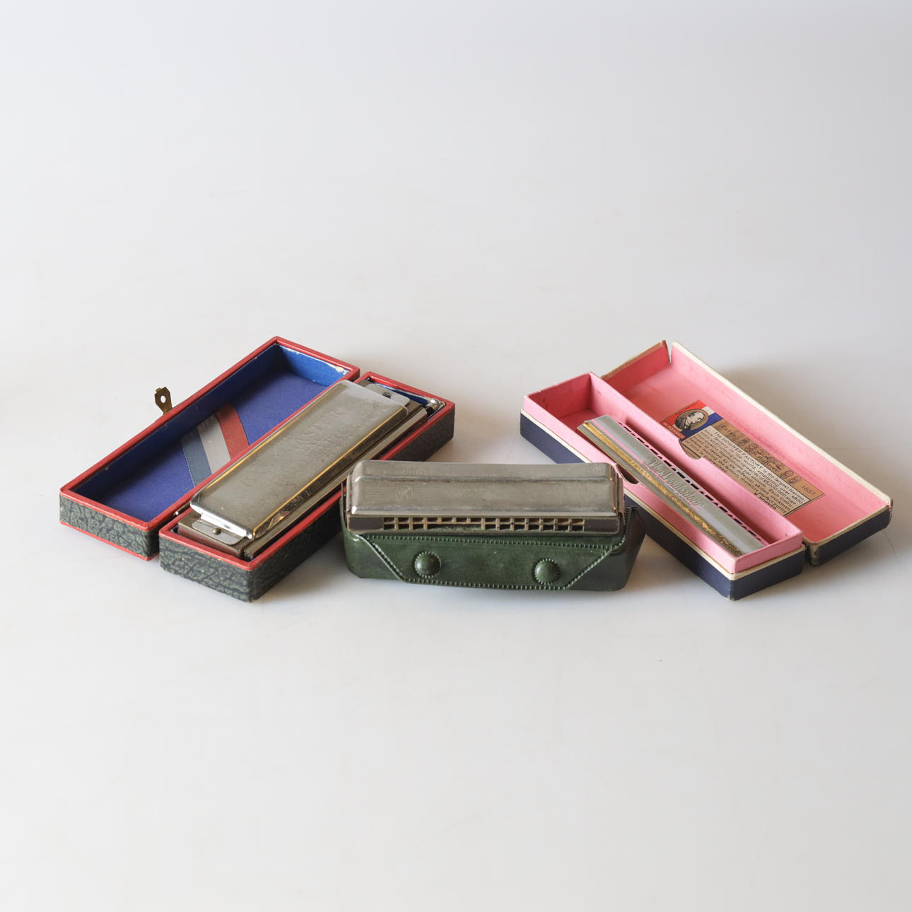 3 st, i etui, bl a The Bandmaster De Luxe Chromatic, längd mellan ca 12 - 15 cm.
