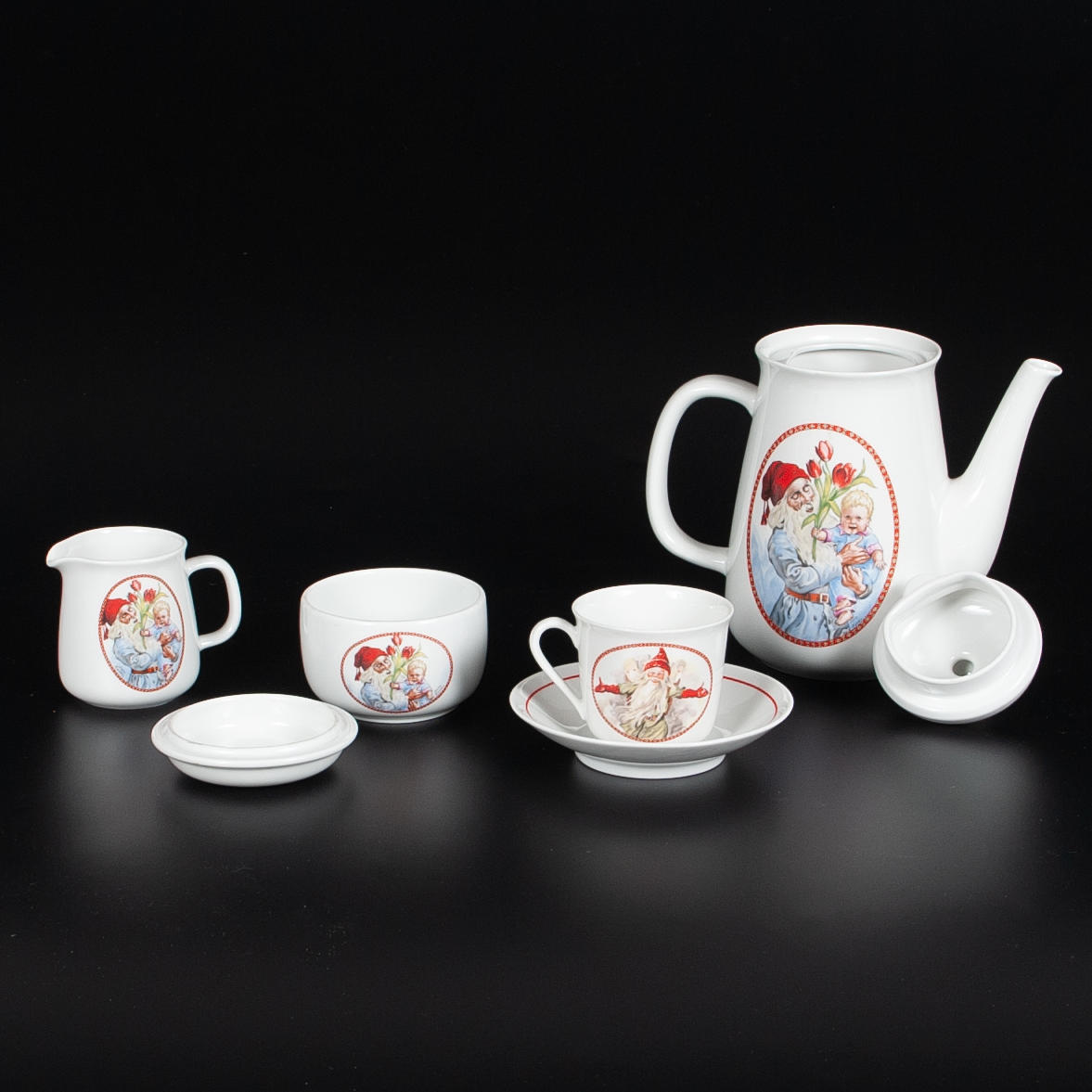 Kakfat, gräddkanna, sockerskål, kaffekanna 12 st koppar med fat, 13 st assietter.
