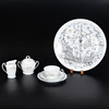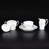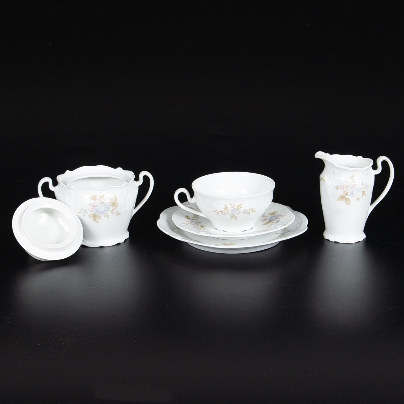 12 koppar med fat, 12 assietter, gräddkanna samt sockerskål.