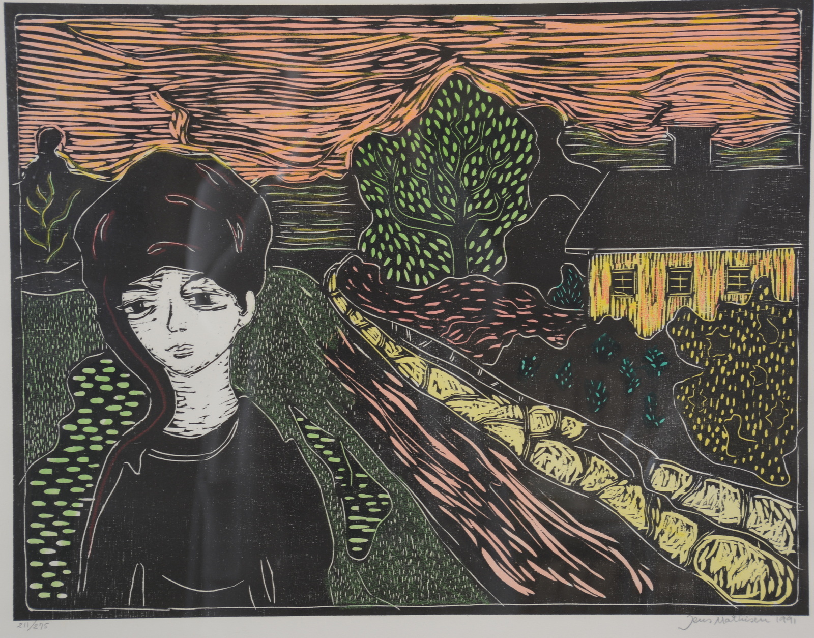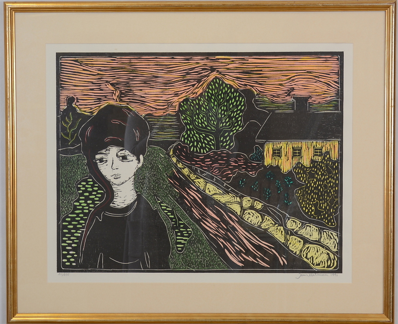 352340. JENS MATHISEN. Kolorerat träsnitt.