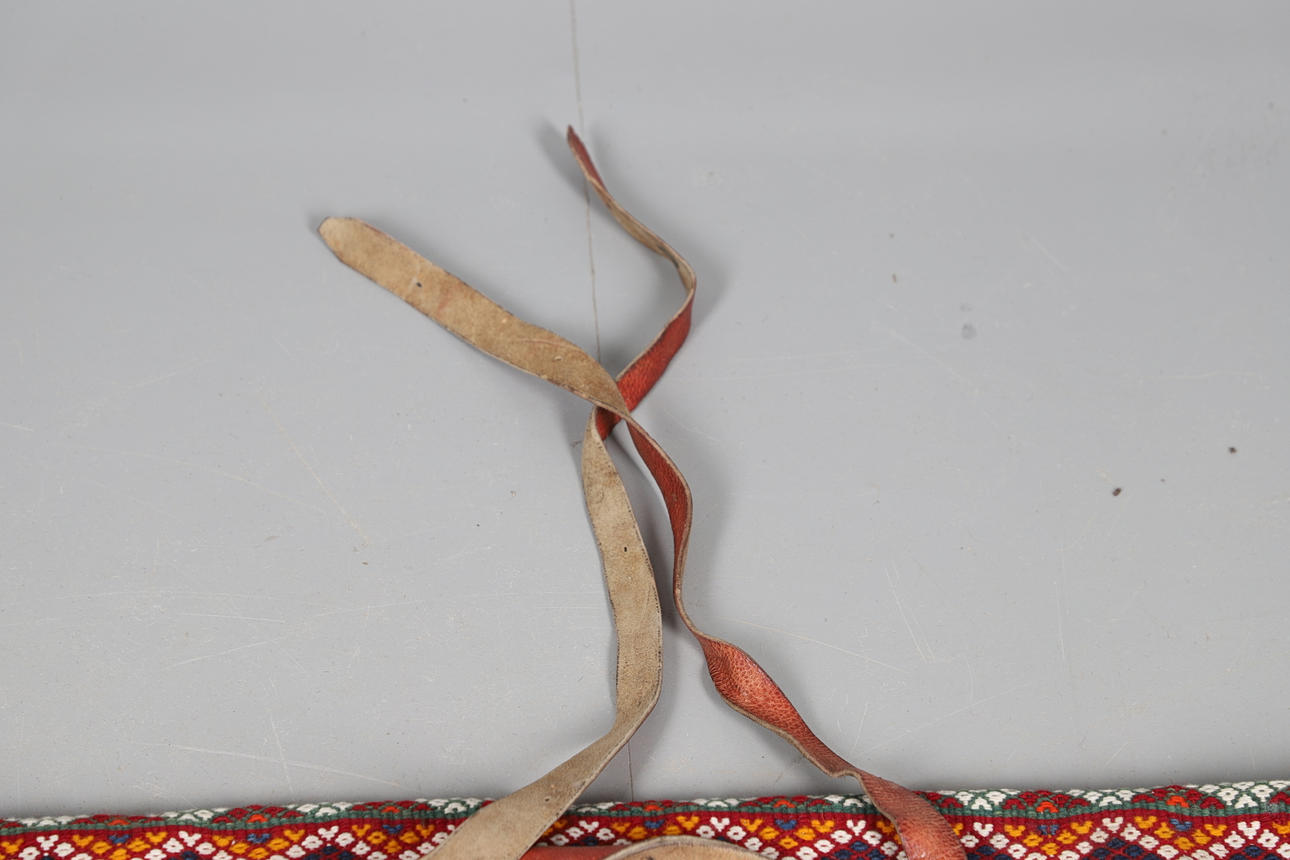 Består av band av pilspets och diamantanordningar, med läderhandtag, 110 x56cm.