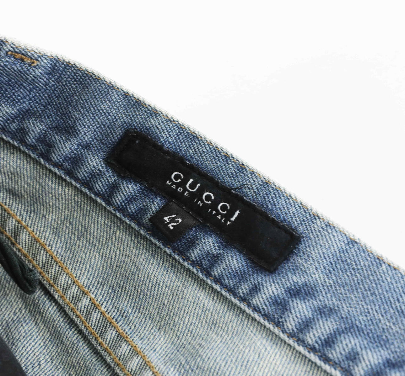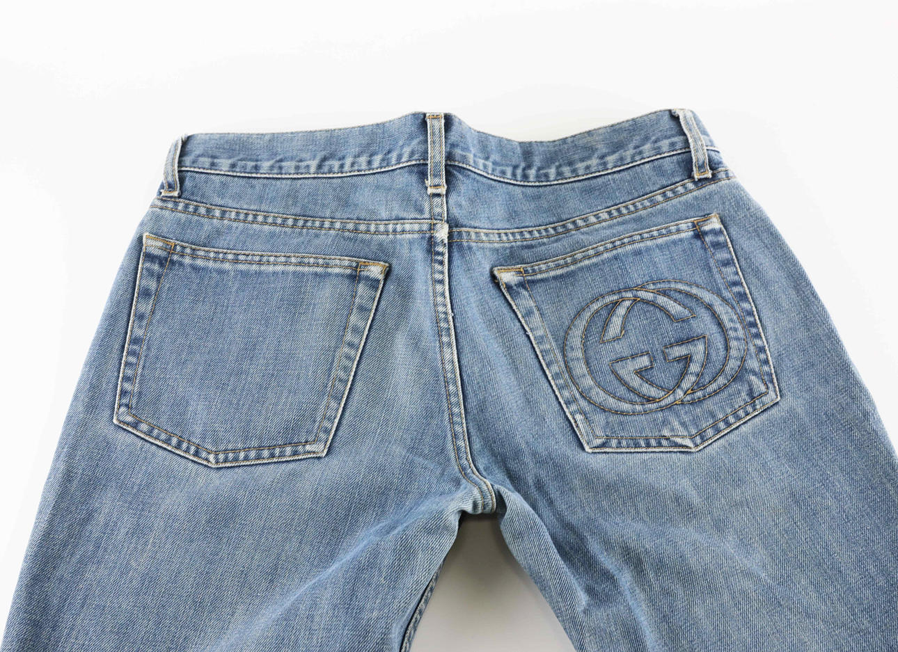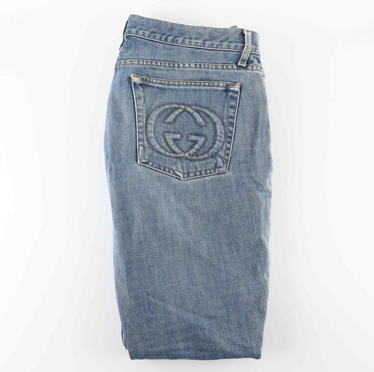 3525811. GUCCI. byxor, denim, logo, storlek 42.
