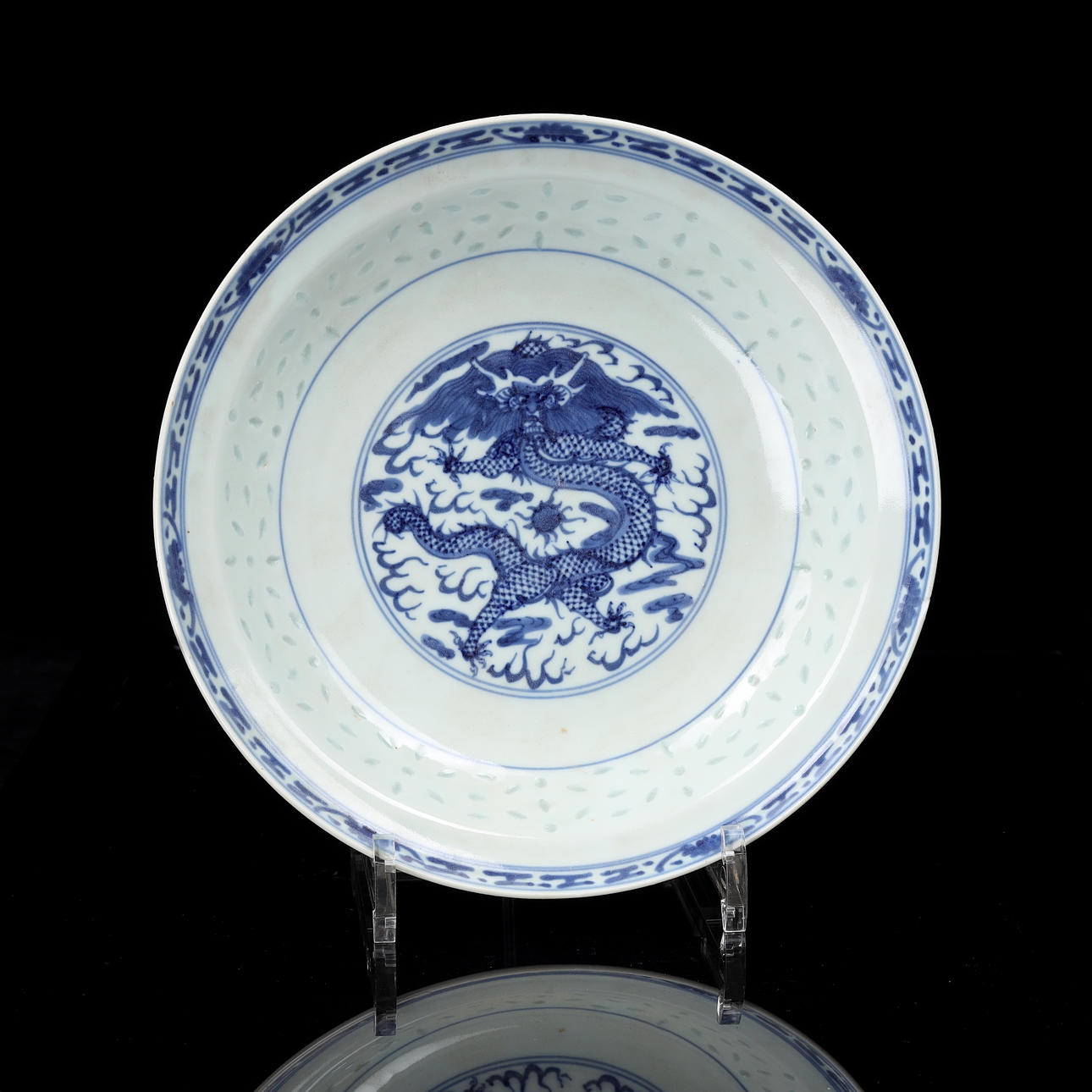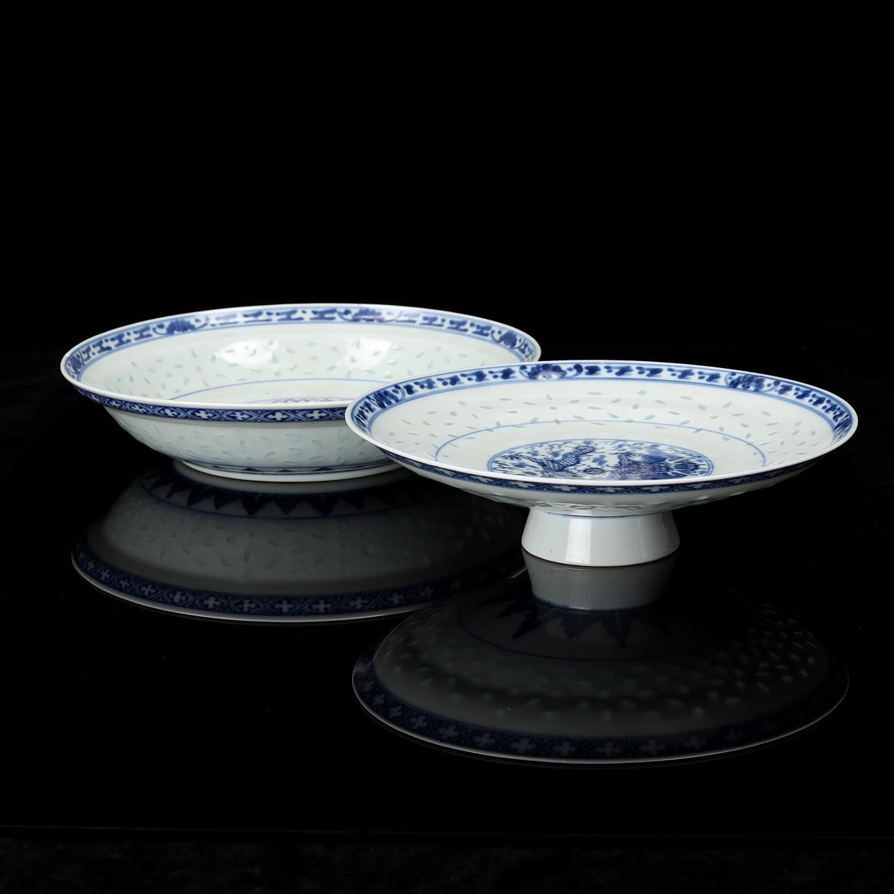 Skål: höjd 5 cm, diameter 23 cm. Fat på fot: höjd 5,5 cm, diameter 21,5 cm.