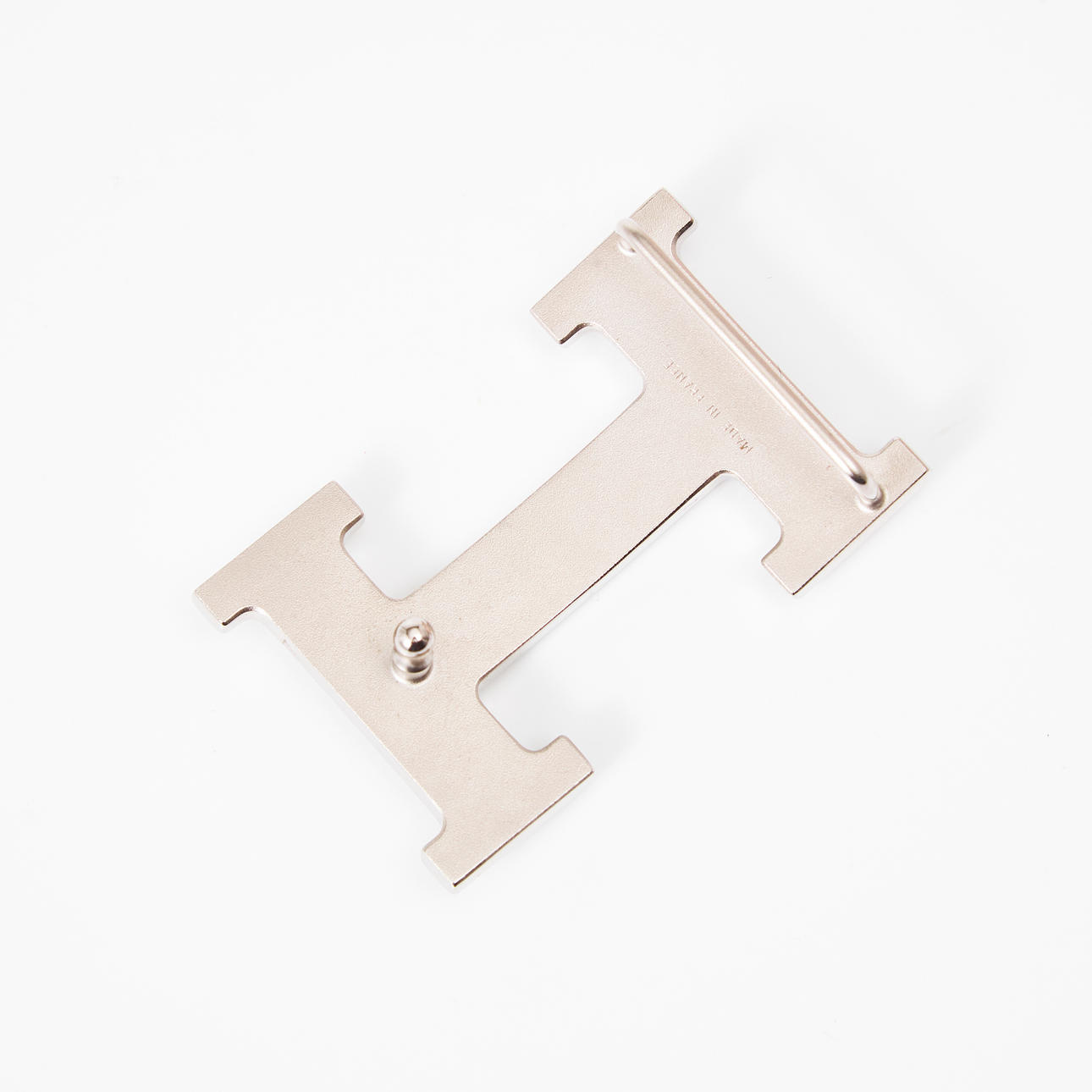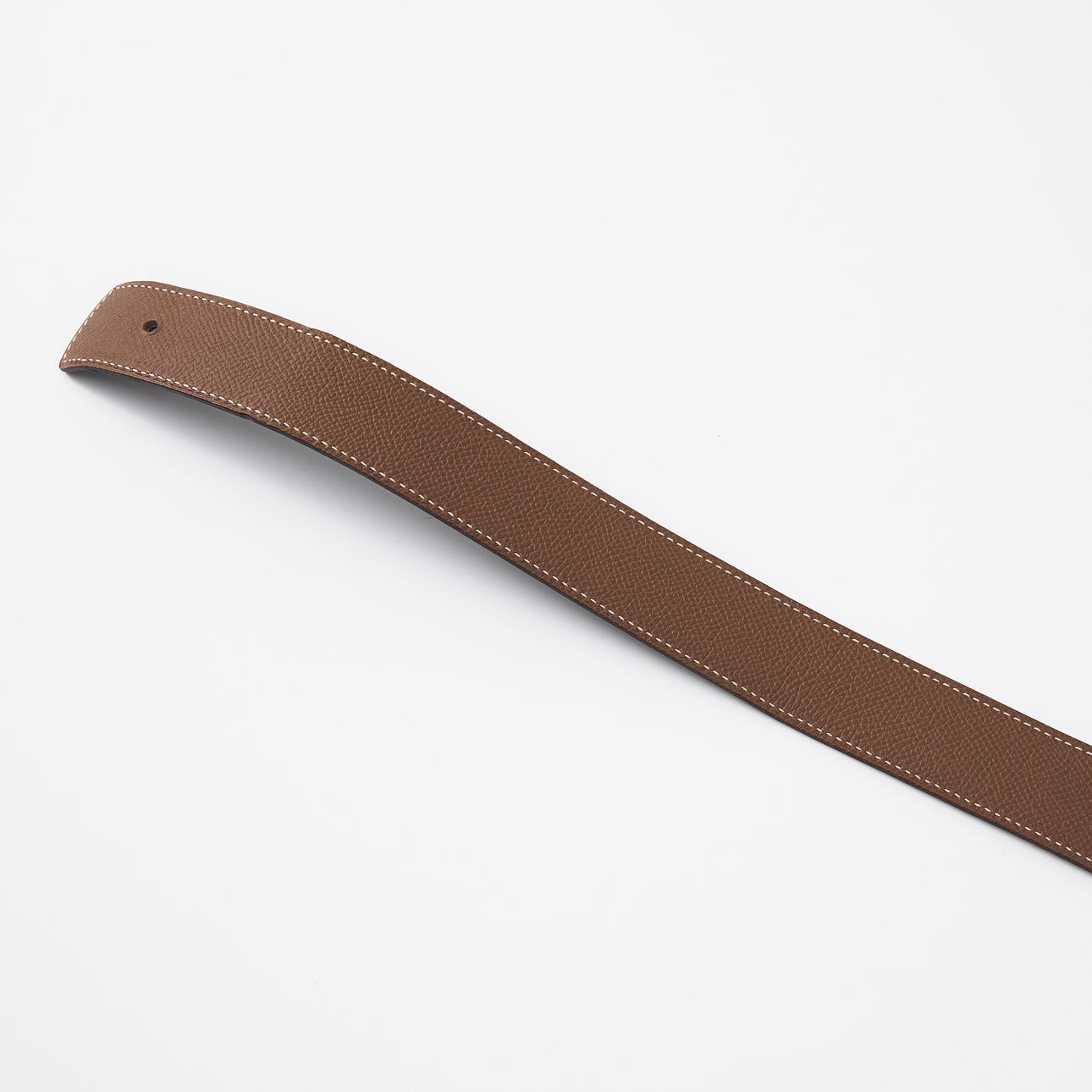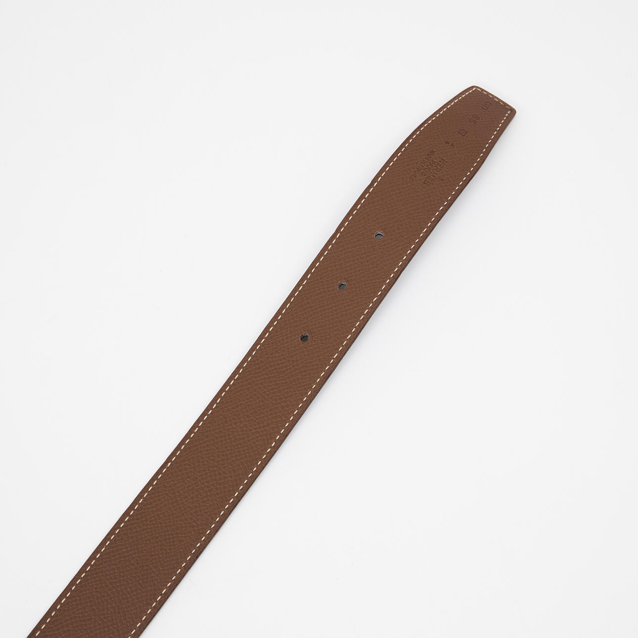 i svart / ljusbrun, ètoupe/black läder med H-spänne, totallängd ca 98 cm, bredd ca 3 cm. I originalbox, inköpt NK 2014.