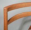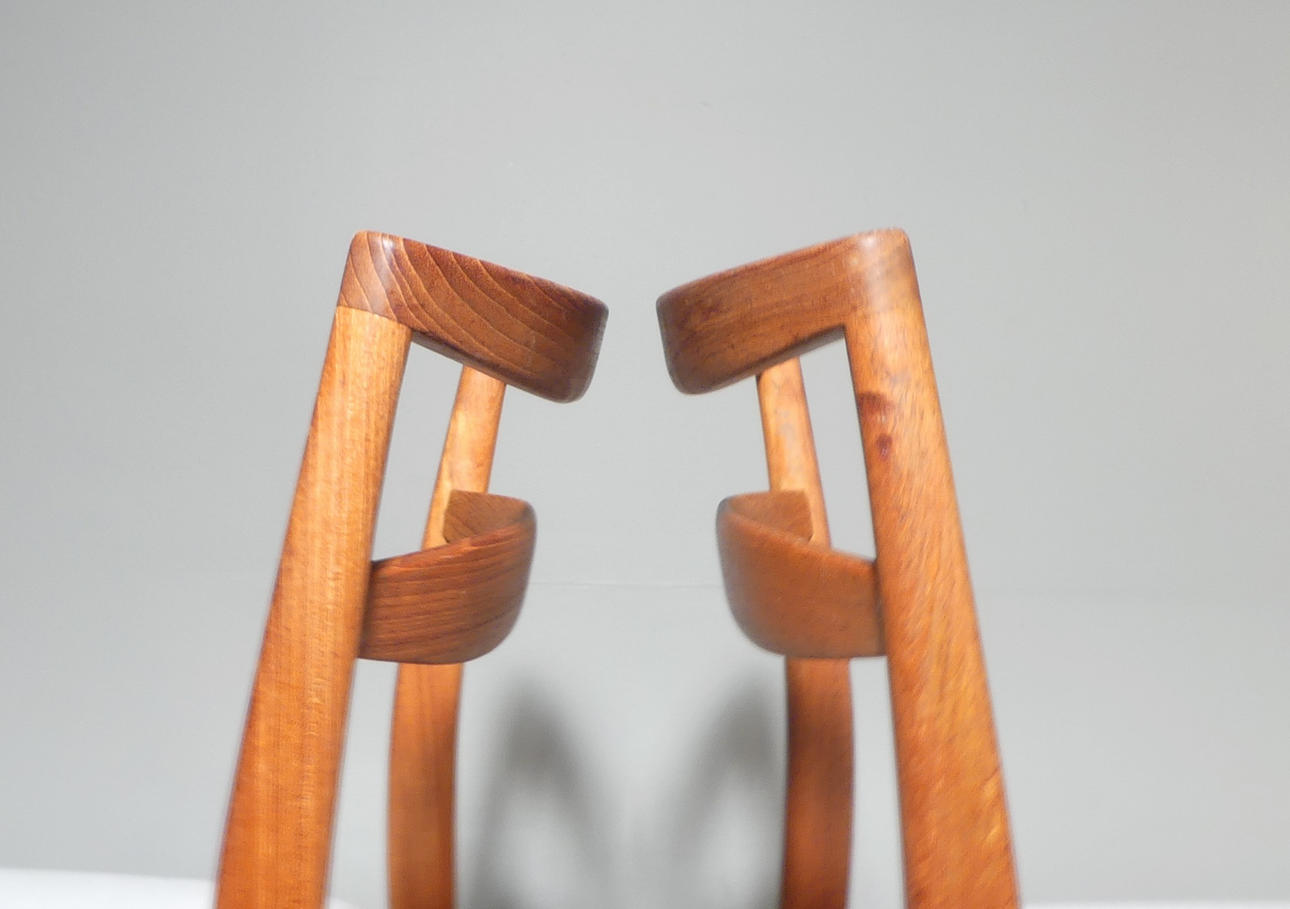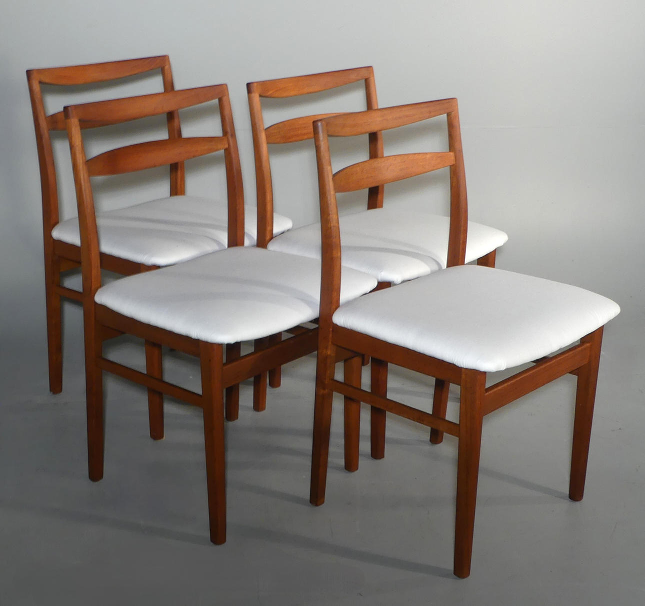 Ben rundade framtill. Stoppad dyna. Nyare klädda med vitt undertyg i bomull. Rygghöjd 80 cm, sitthöjd 45 cm.