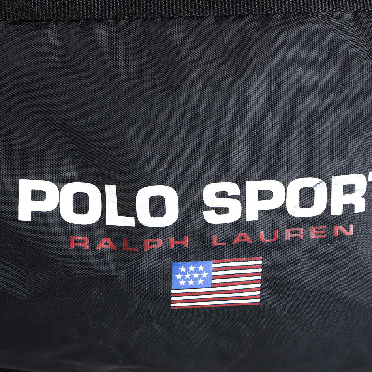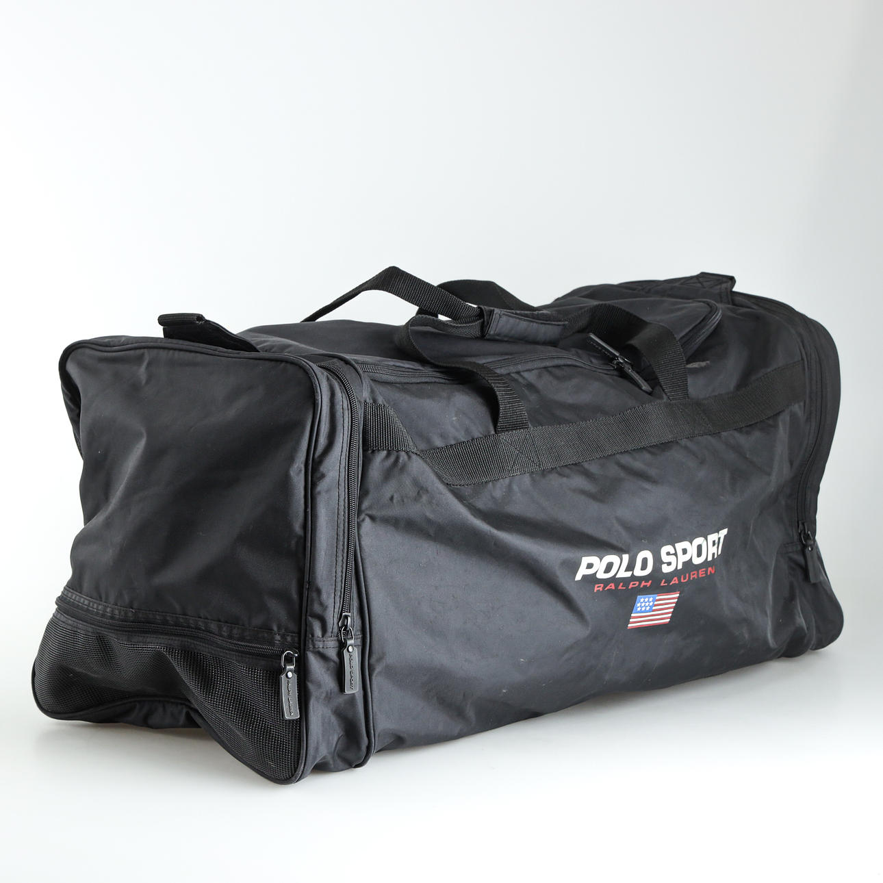 I svart nylon. Sidor med fack. Handtag med kardborrefäste. Ca 78x35x35 cm.