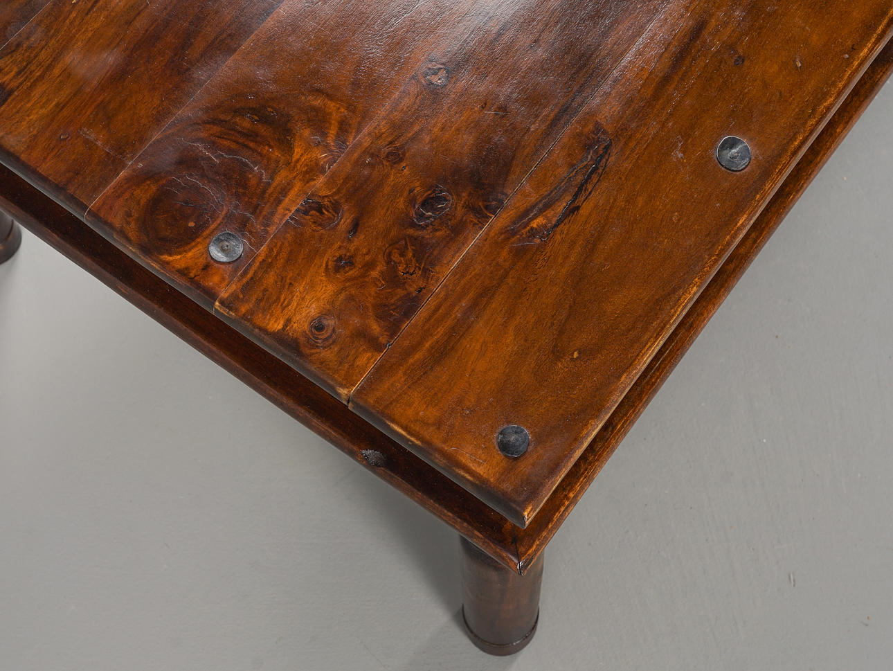 Massivt trä, svarvade ben, beslag i metall.