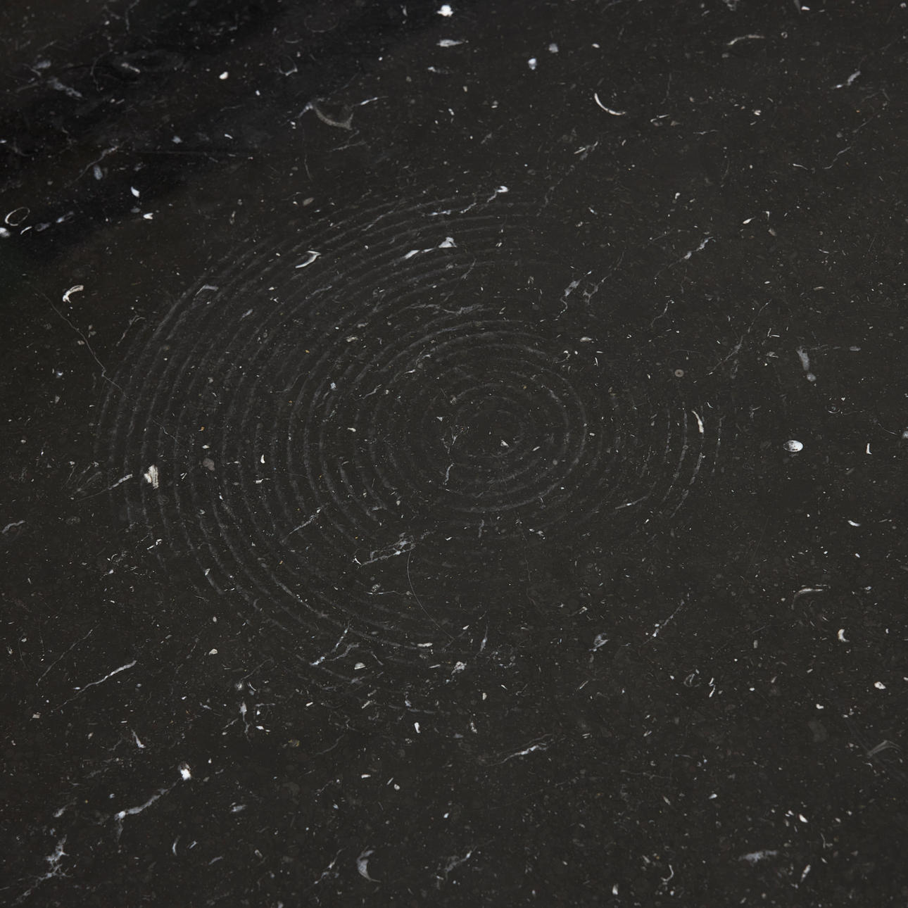 Skivan med flera nagg, skrapmärken och fläckar, bruks och åldersrelaterat slitage.