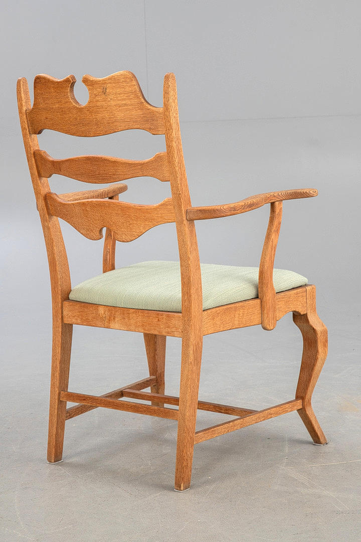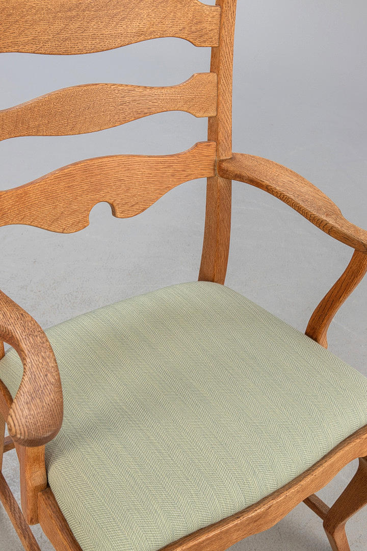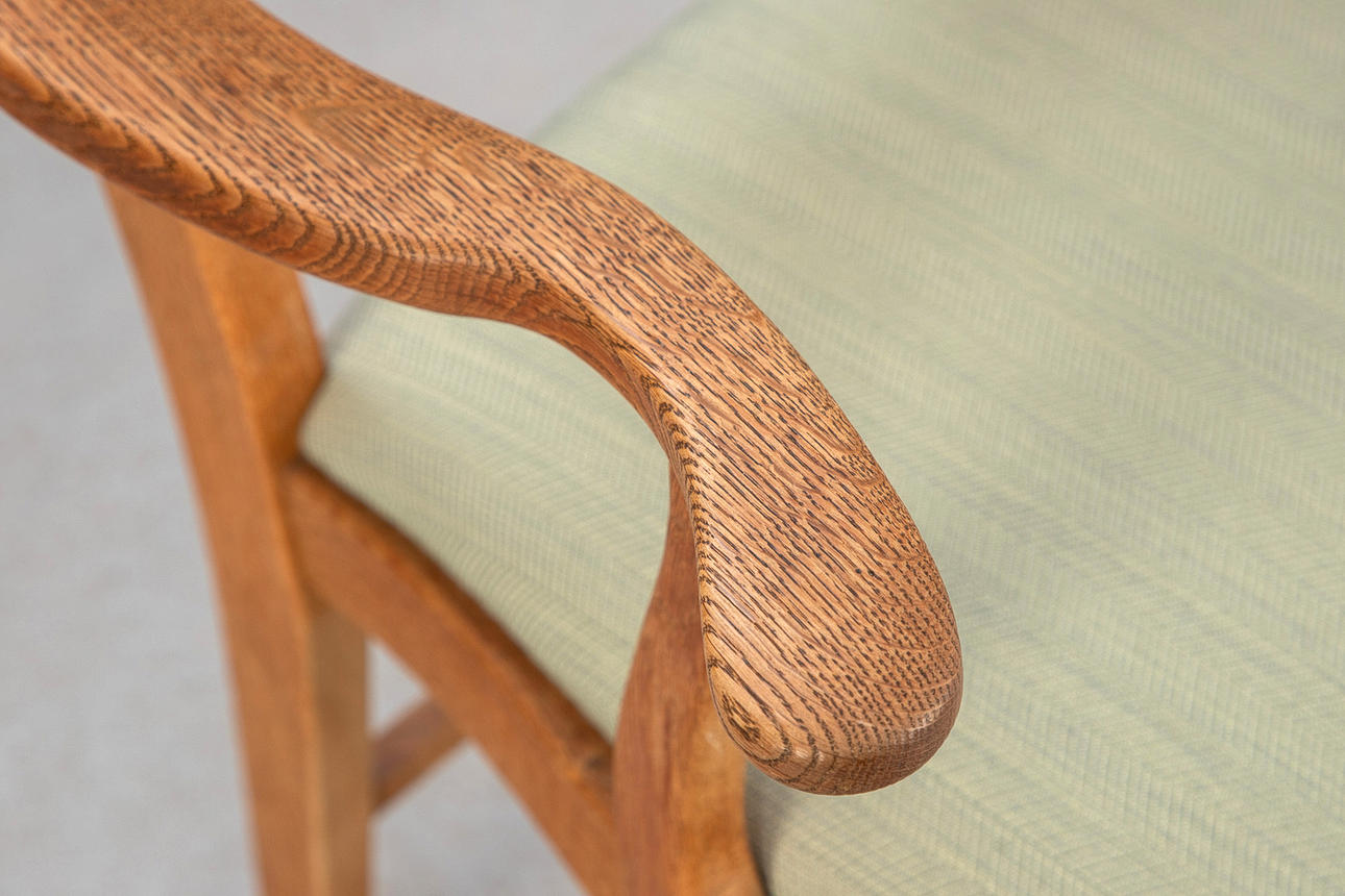 Danmark, 1960-tal. Massiv ek, stoppad sits täckt med pistaschgrönt tyg.
