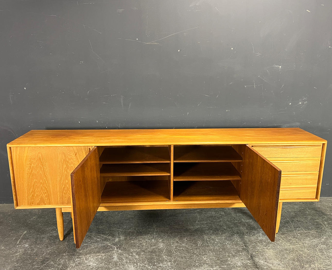 Teak trä med dörrar och lådor