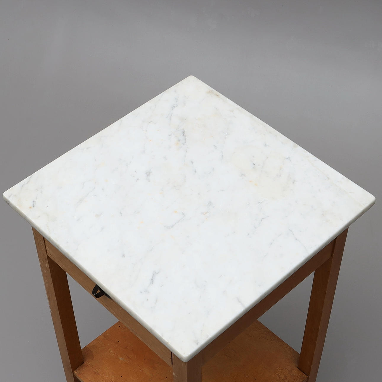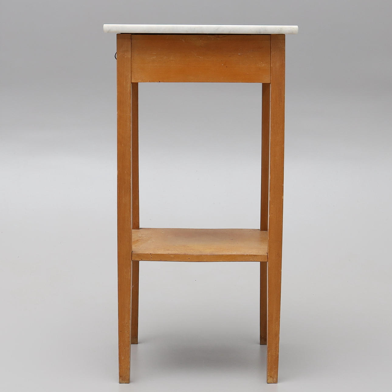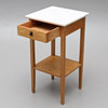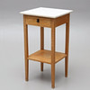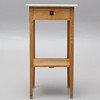 Nattduksbord med låda samt en underliggande hylla, mässingsbeslag. 40 x 40 cm, höjd 76 cm.