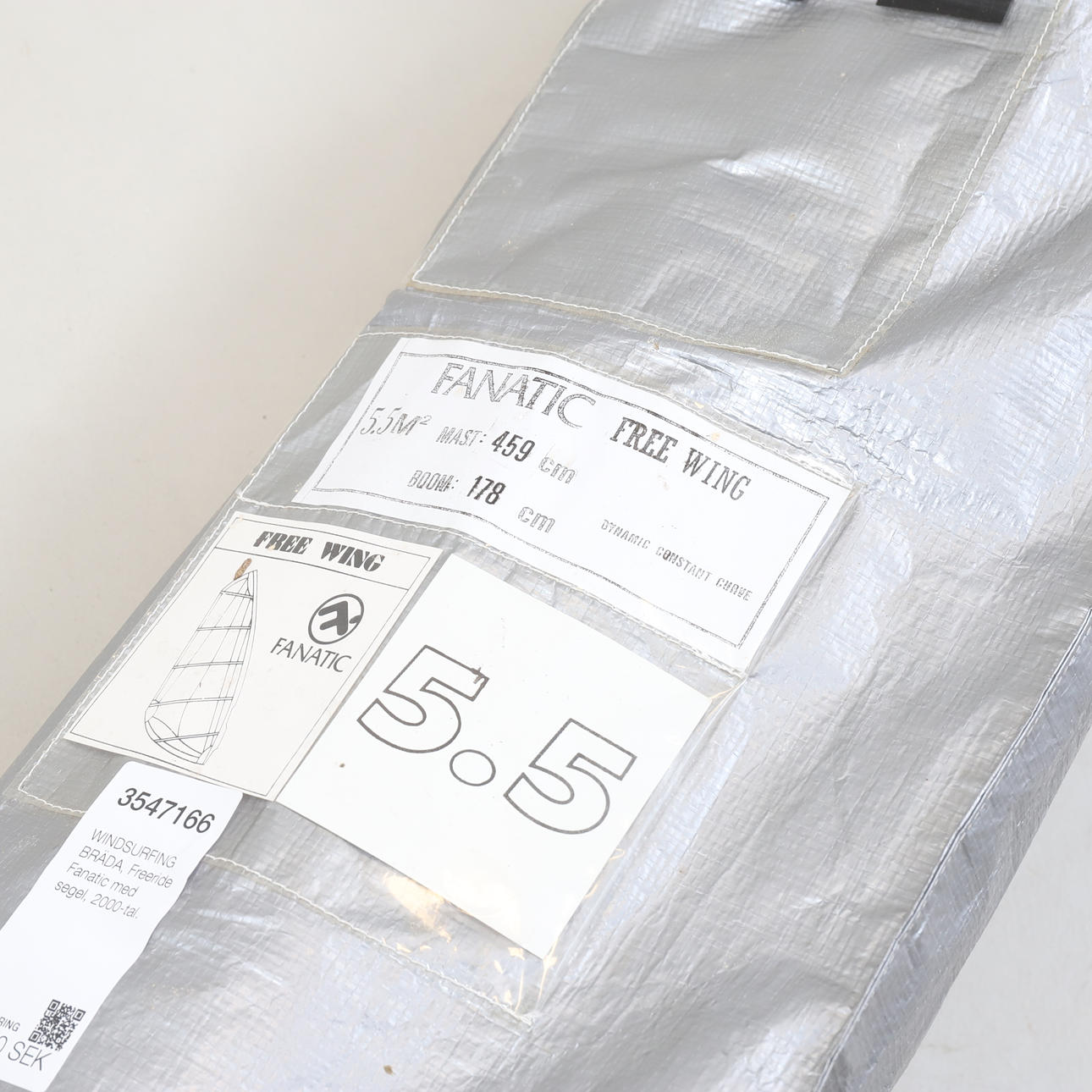 Bräda: Längd ca 3, 15 cm. Bredd ca 70 cm. Segel: Free Wing 5,5 kvm. Mast ca 4, 65 m. Medföljer Anatomic Harness, storlek M.
