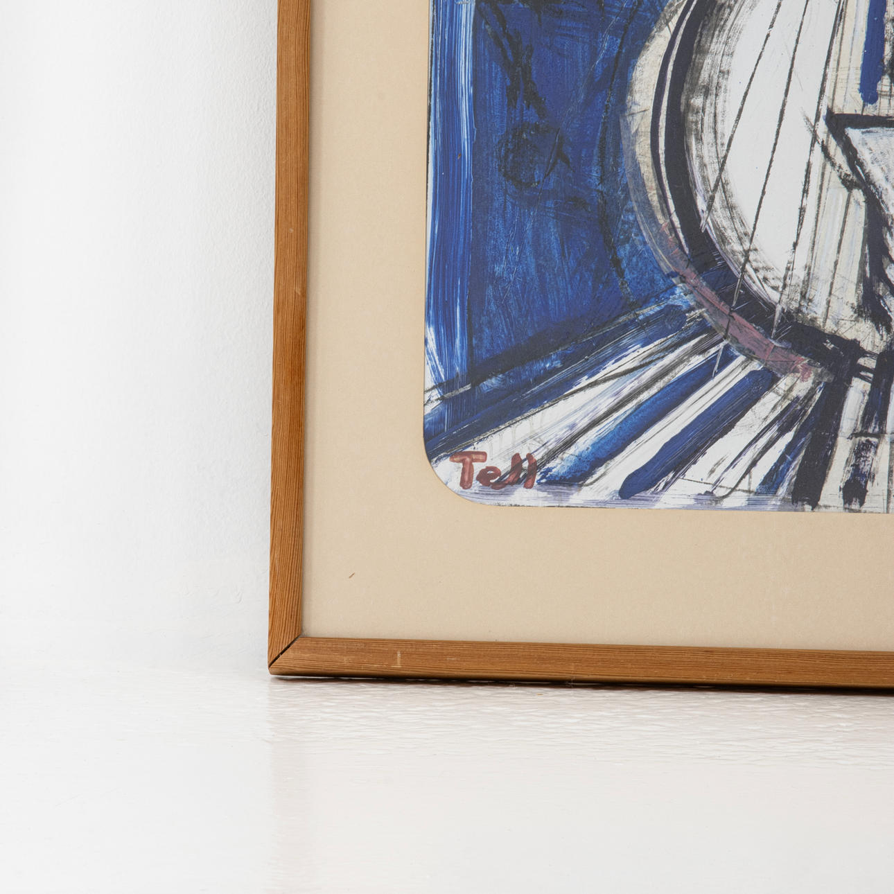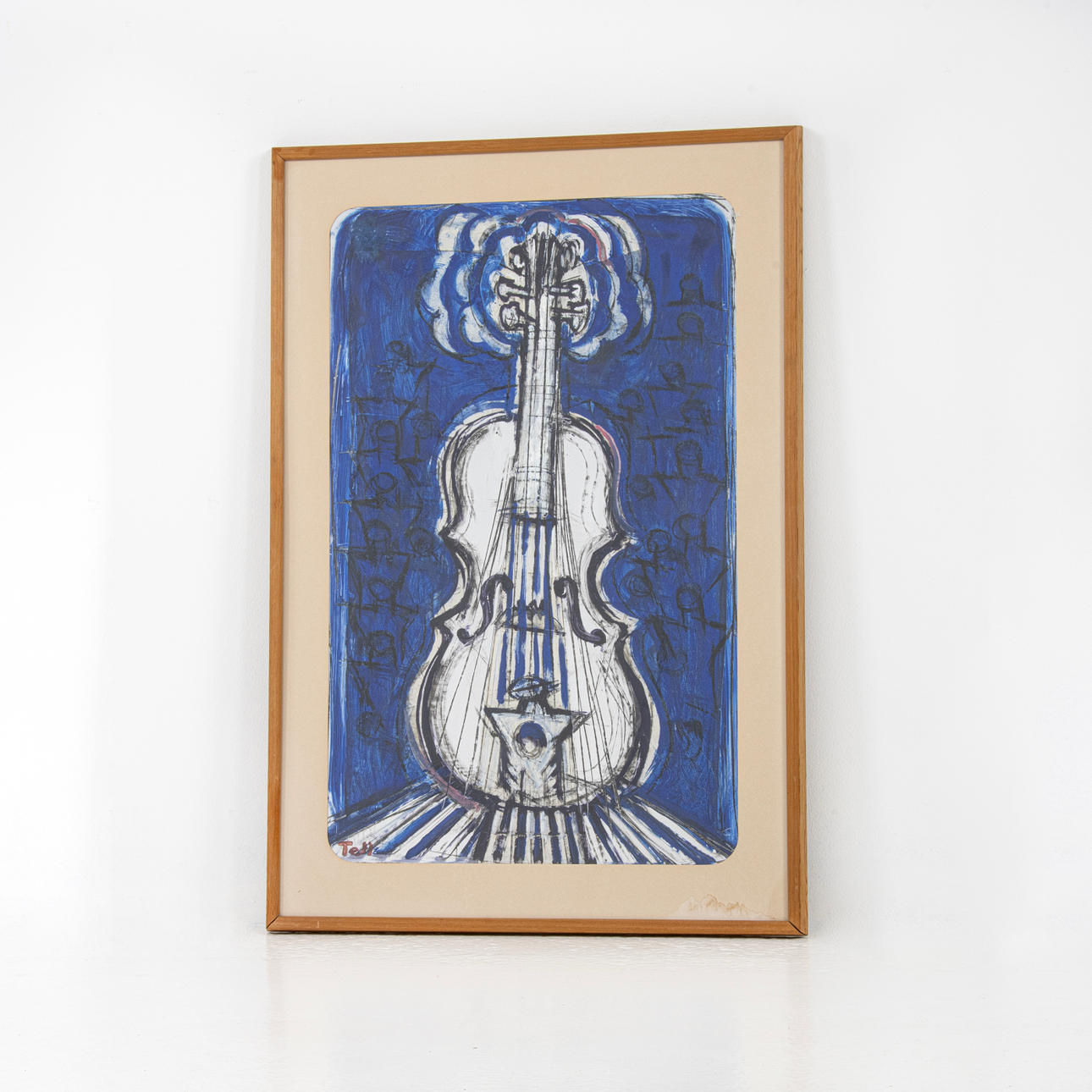 Måleri på papper, signerad Tell. Dagmått 77 x 47.5 cm Ramens mått 92 x 63 cm.