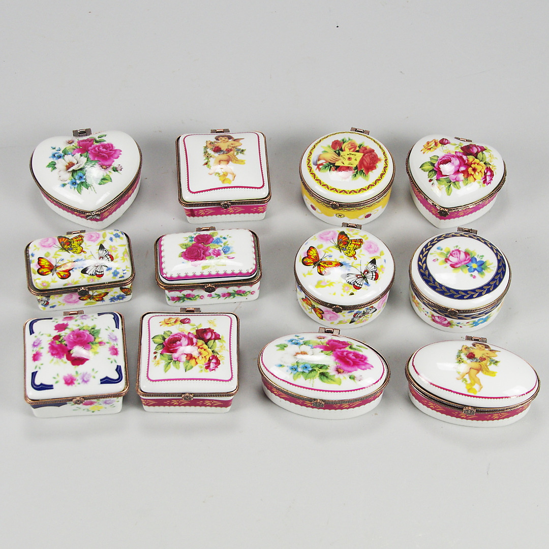 354800. LOCKDOSOR, 12 stycken, porslin/metall, samtida.
