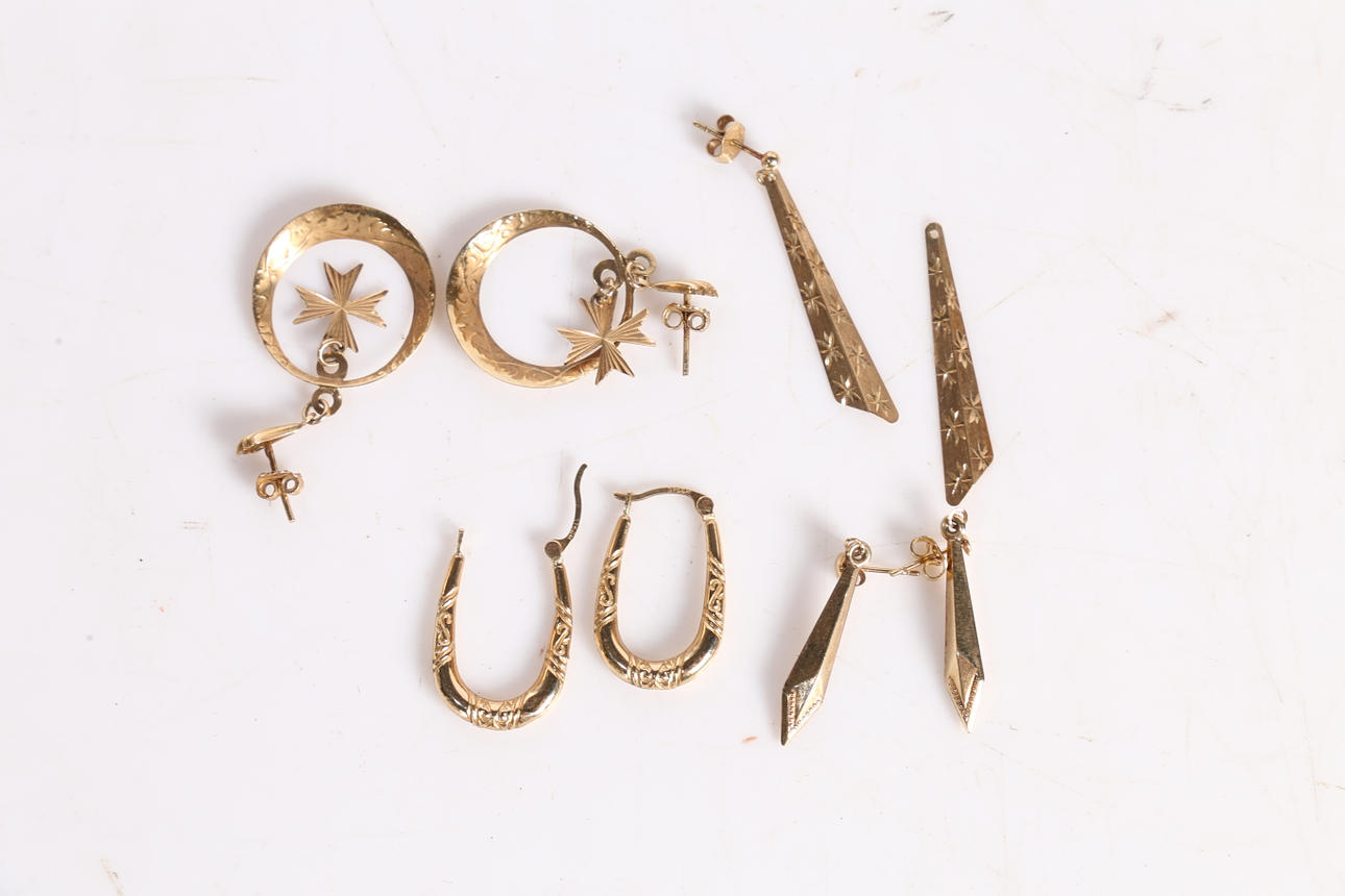 3552887. FYRA PAR 9CT GULD ÖRHÄNGEN.