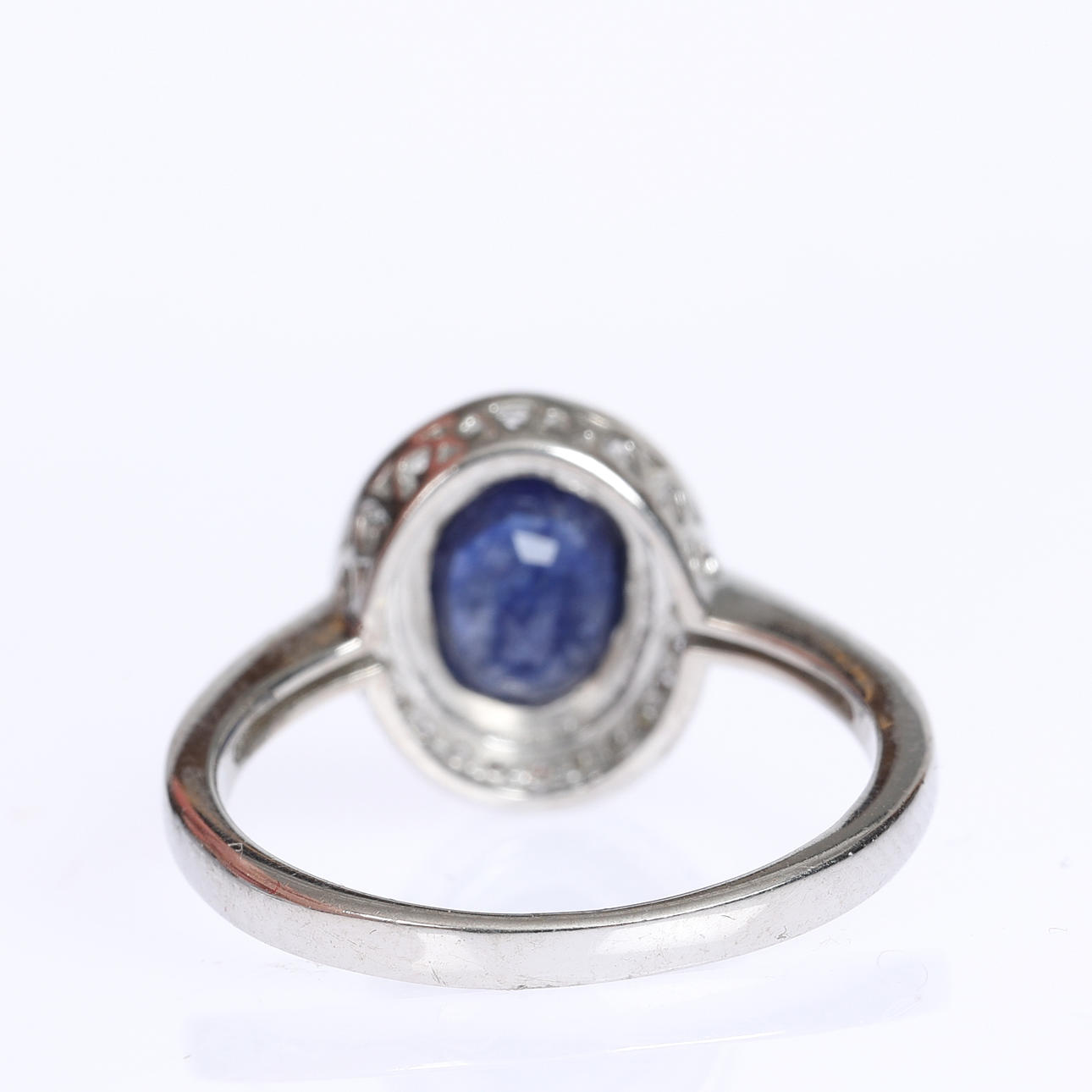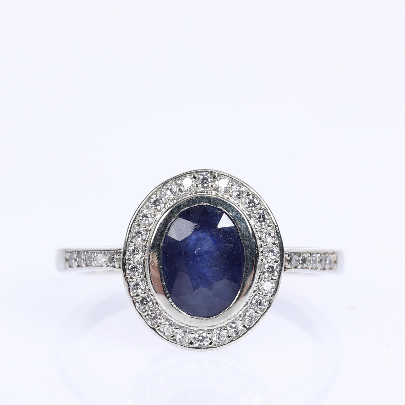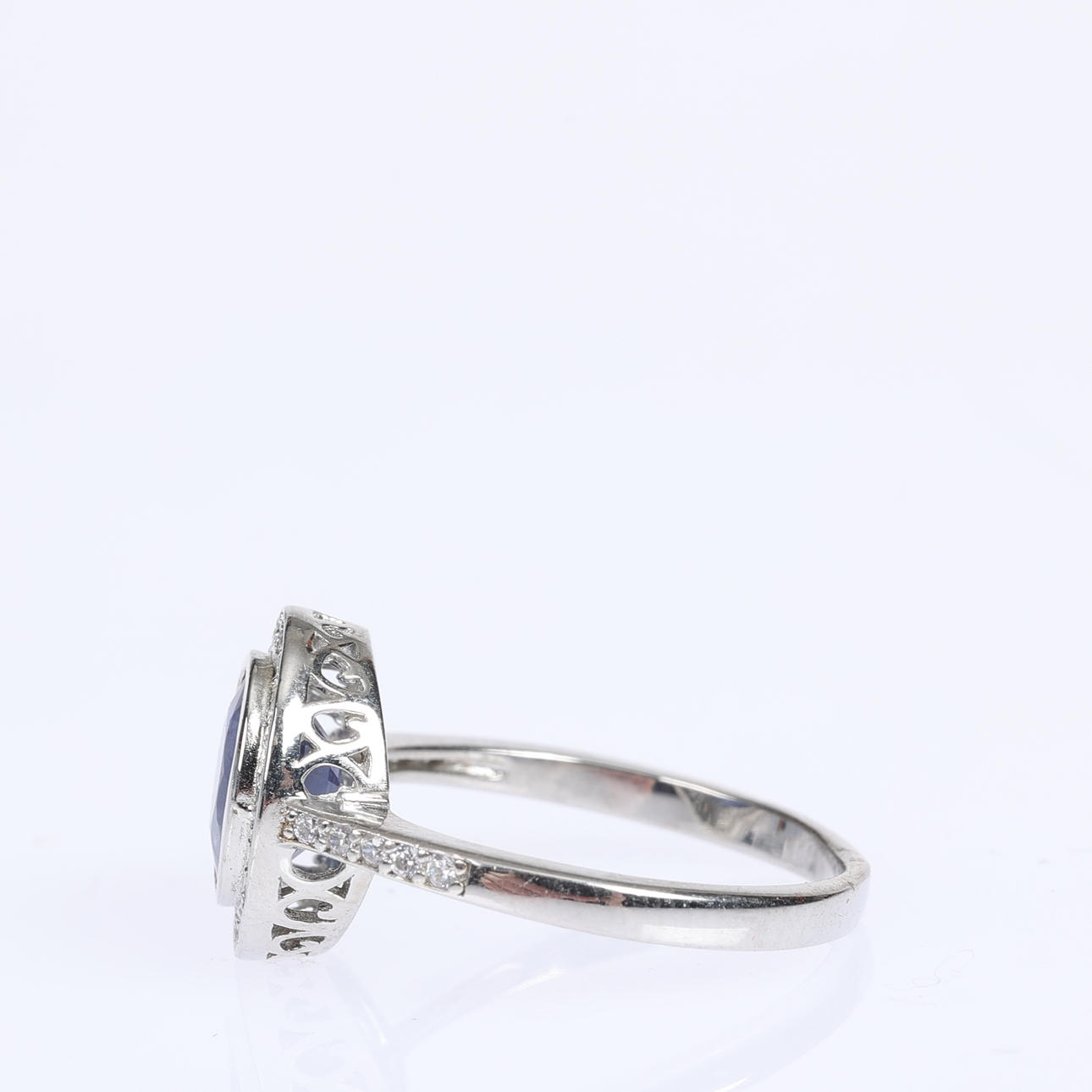 Ring i sterling silver med en ovalslipad safir och briljantslipade cubic zirkoner