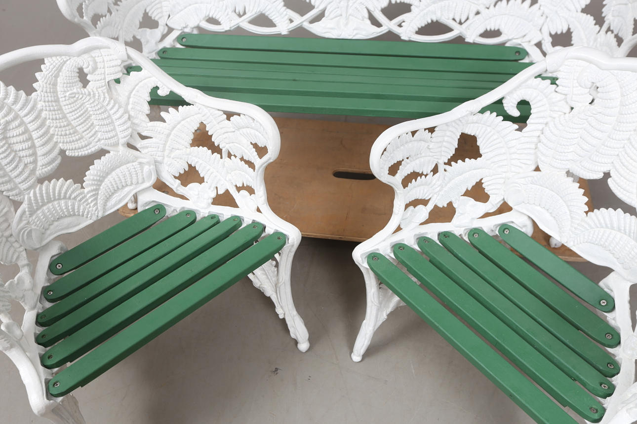 3555264. TRÄDGÅRDSMÖBEL, "Ormbunke", soffa samt två fåtöljer.