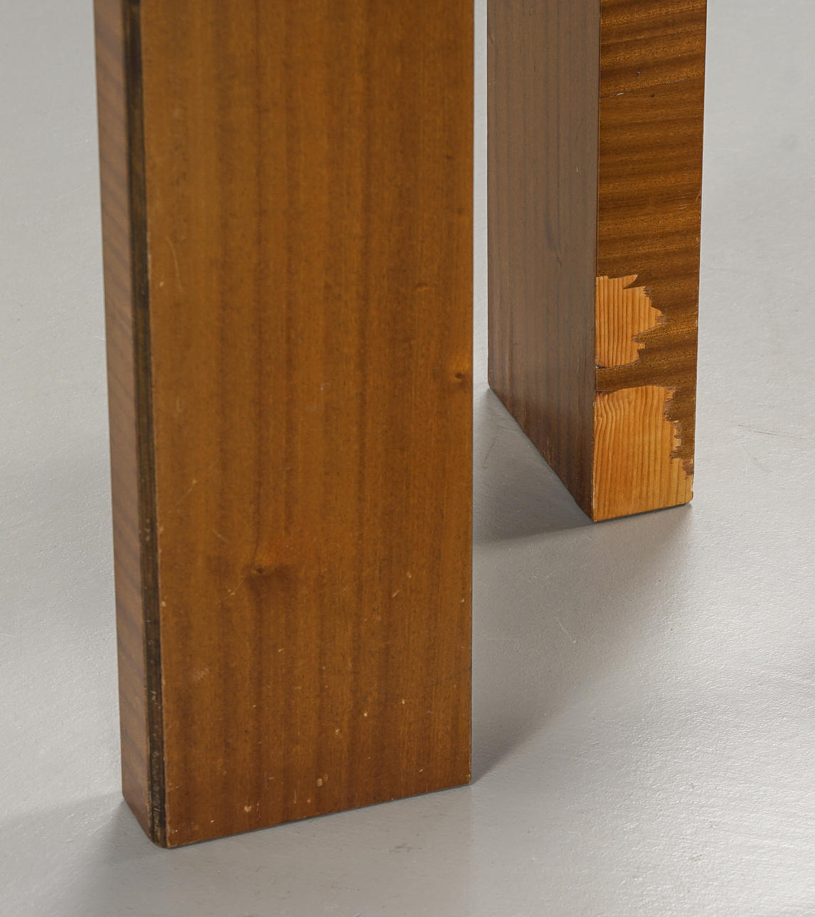 Bruksslitage, benen med fanérbortfall och fanérresningar.