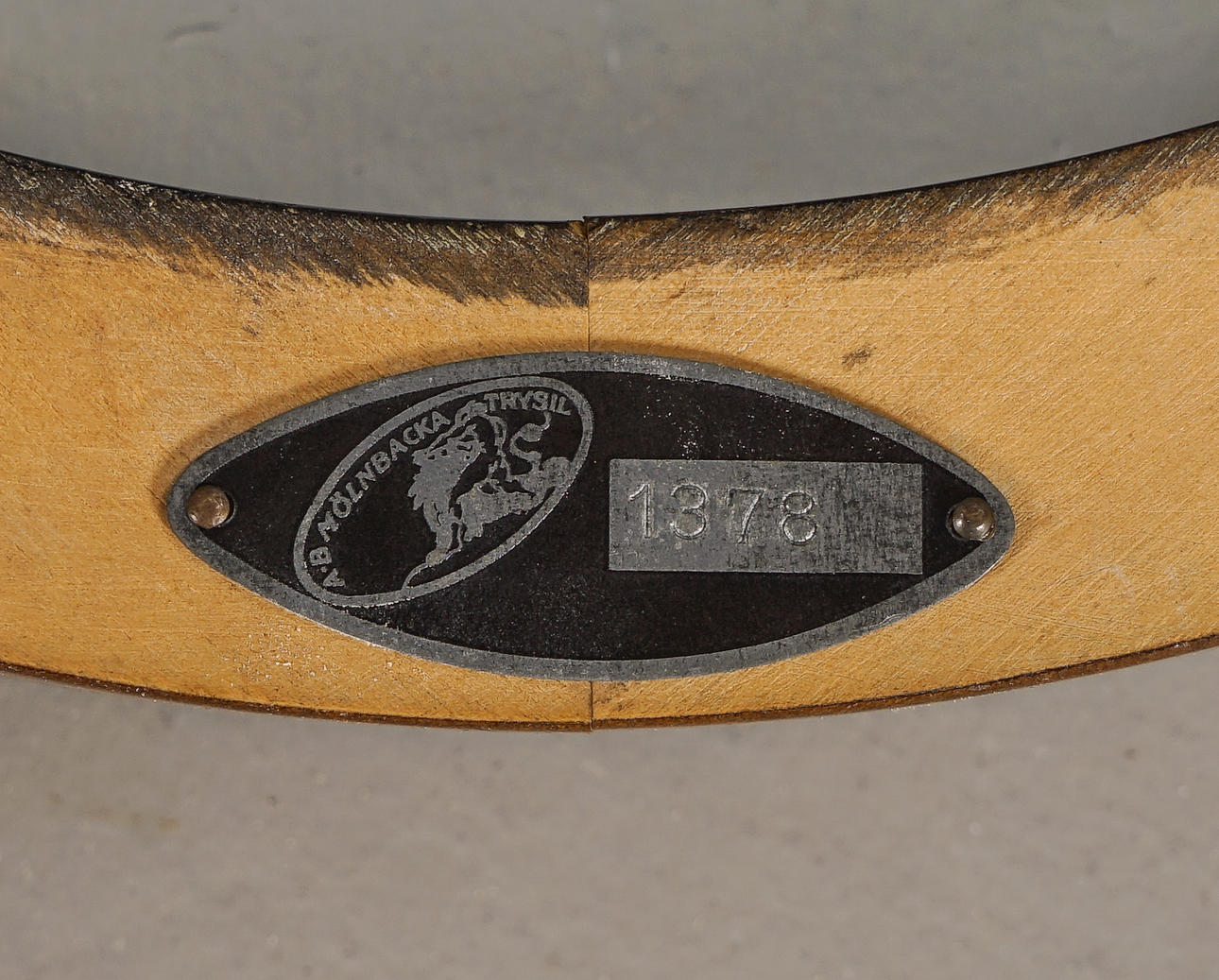 Benställning fanerad med mahogny, råglasskiva. Skyltmärkt AB Mölnbacka - Trysil (sannolikt inventariemärkning)