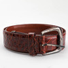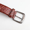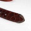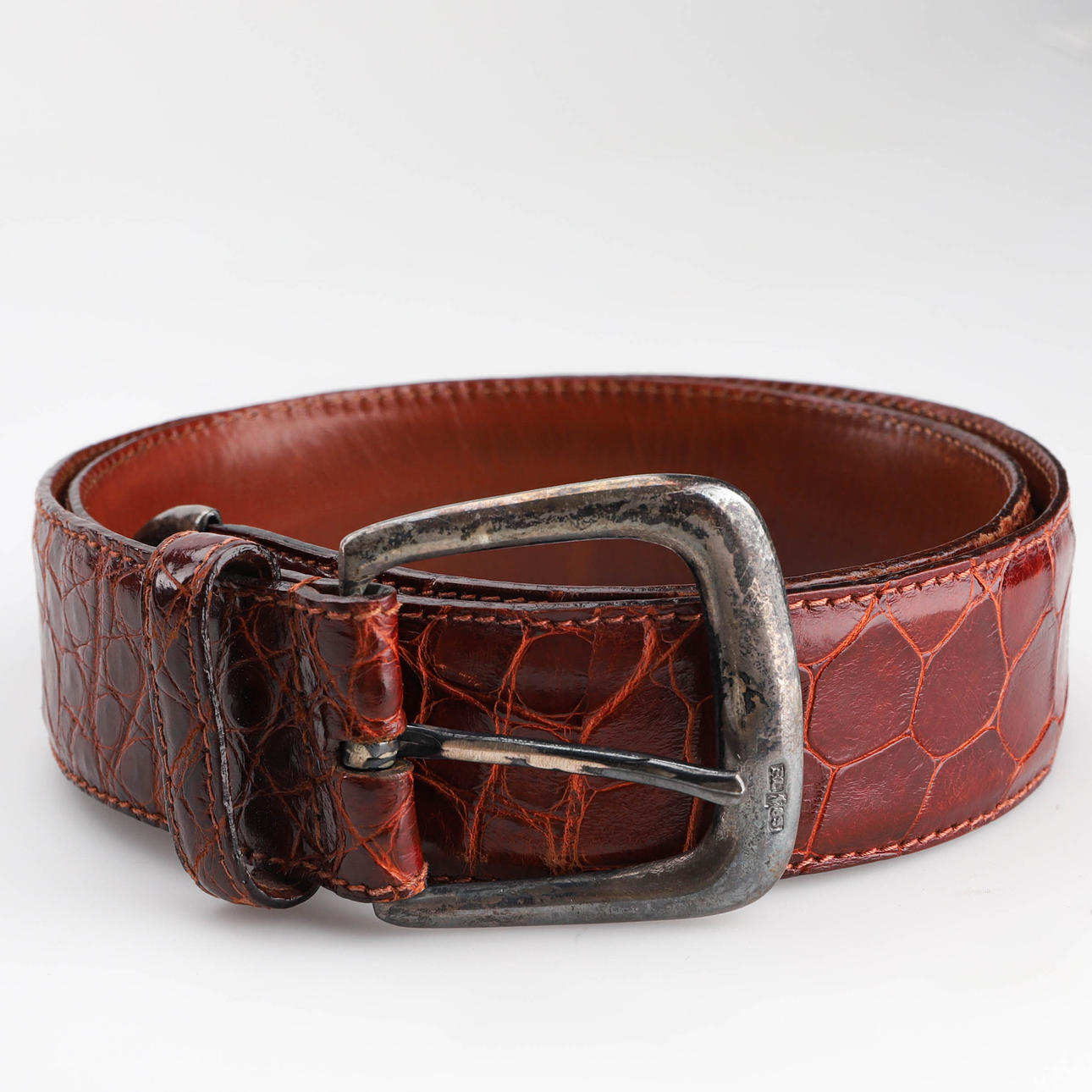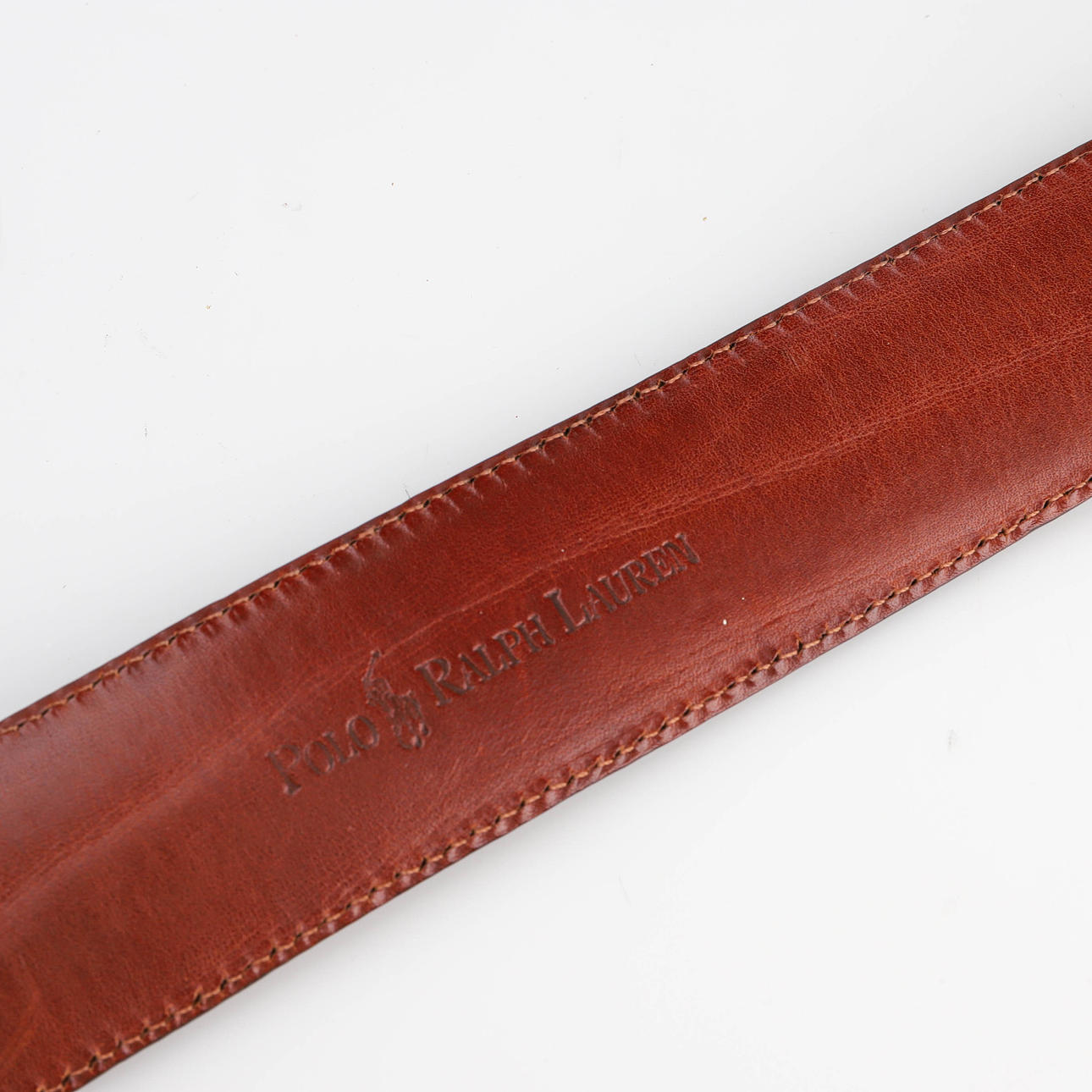 Längd inklusive spänne 96 cm, bredd 3,6 cm, metallskoning i änden. Märkt Ralph Lauren, made in Italy.