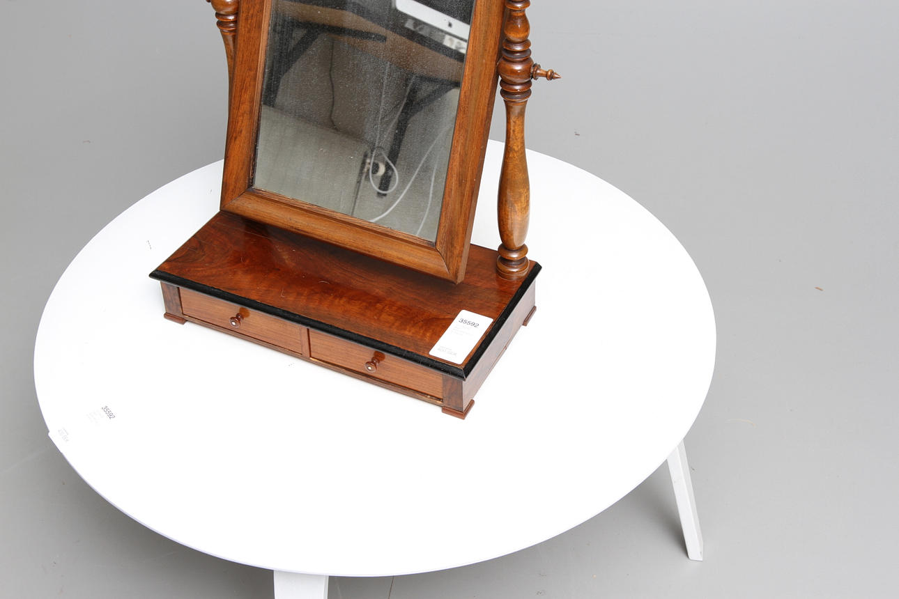 Bordsspegel, nyrenässans, valnöt. Höjd 61 cm.