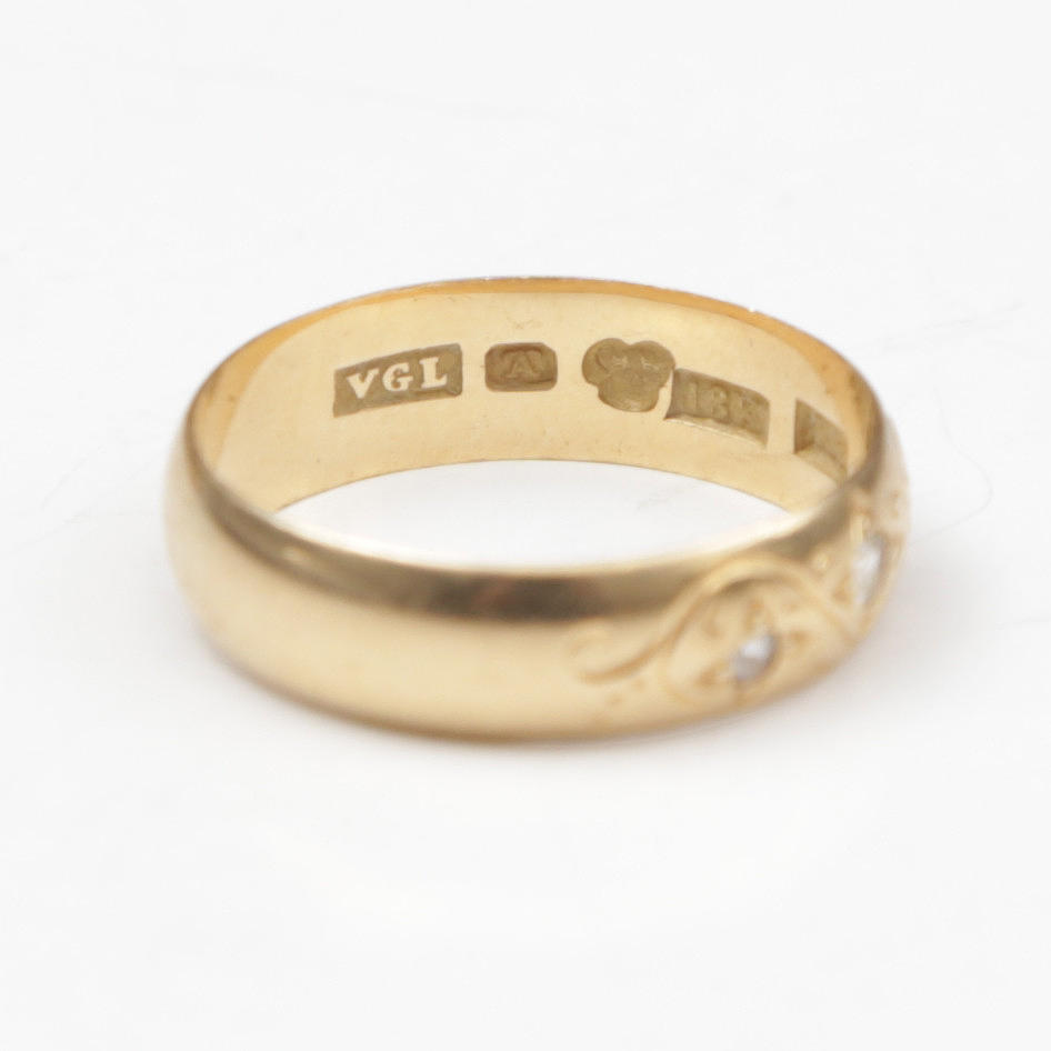 RING, 18K, med stenar, ej diamanter.