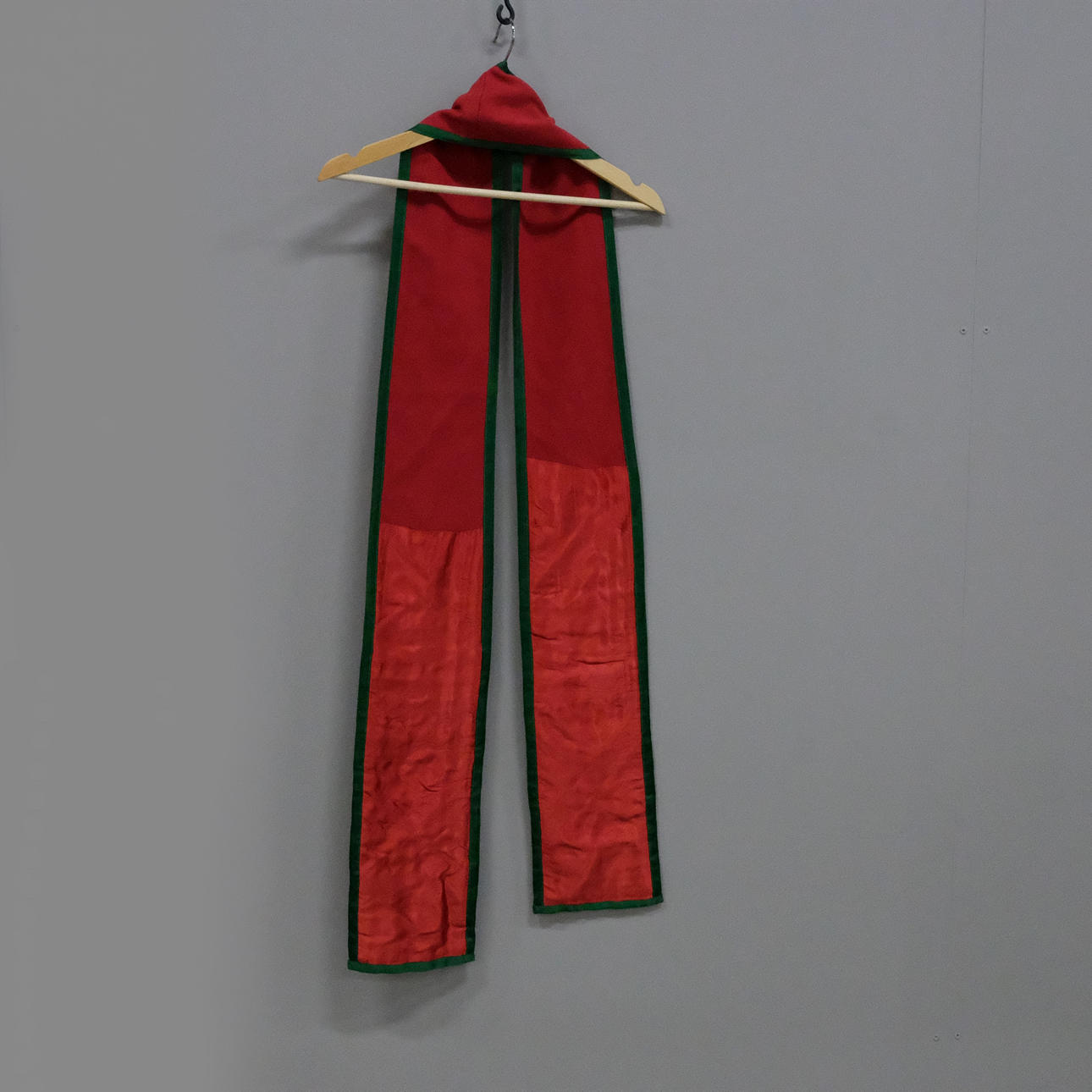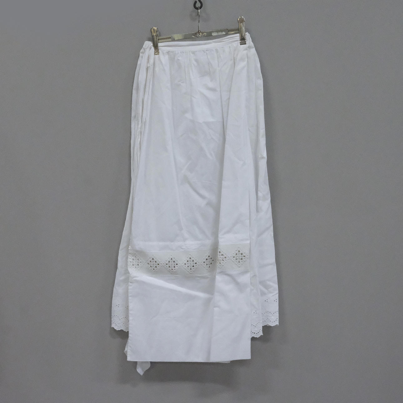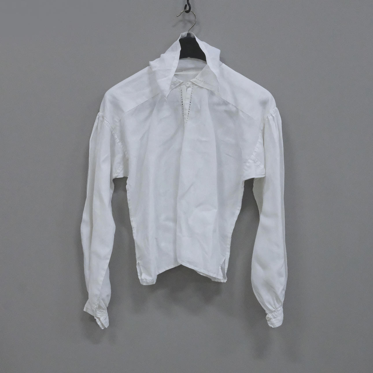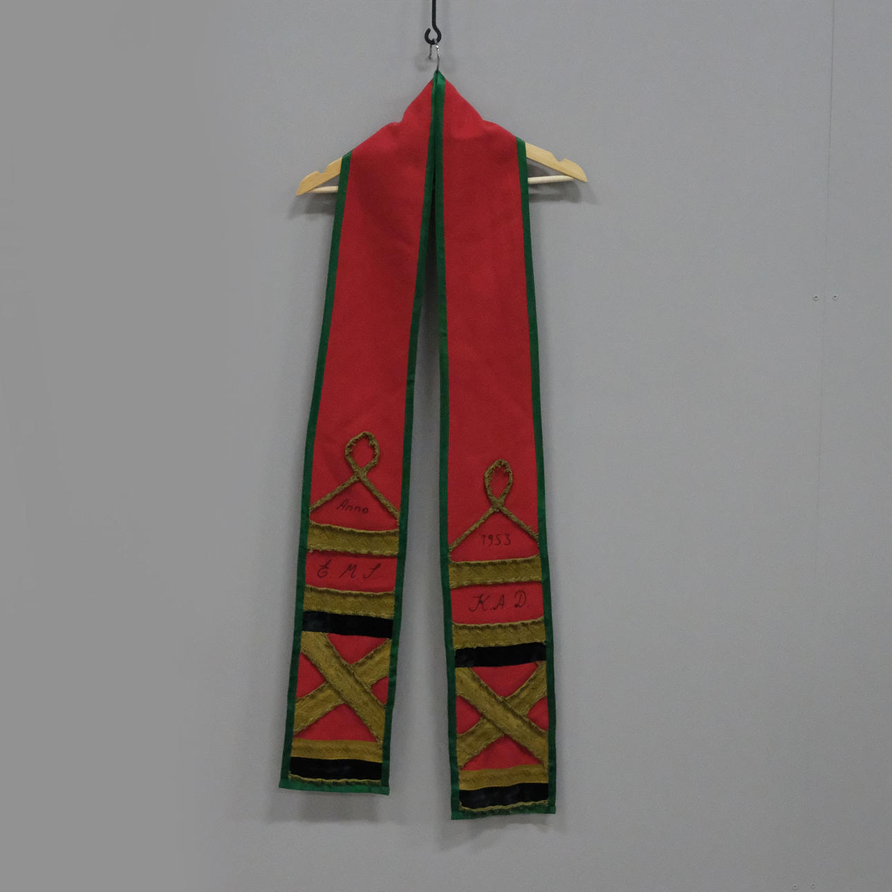 Klänning, skjorta, tre förkläden samt bälte med monogram EMJ och KAD 1953.
