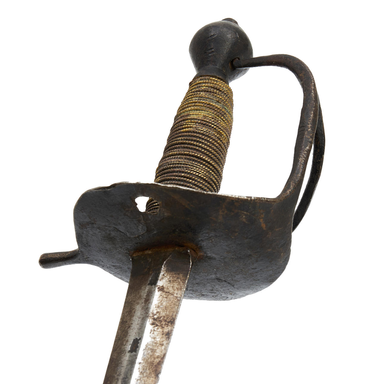 Värjan är ursprungligen en infanterivärja m/1685, som förkortats och vars tumbygel borttagits.