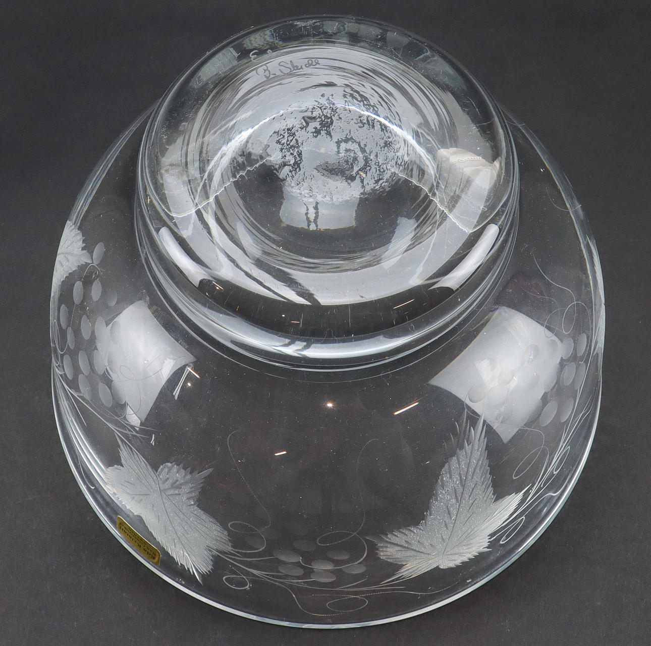 Etsad dekor med vinrankor, signerad.