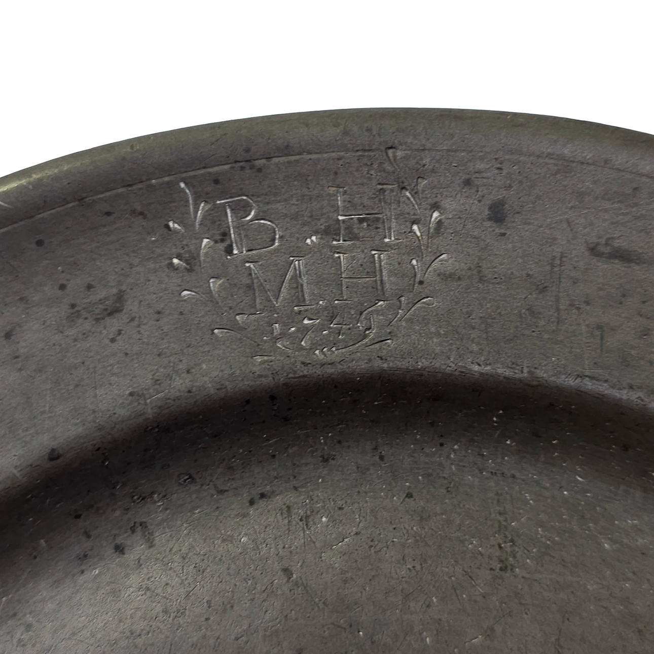 3561005. PLÅTPLÅT DATERAD 1749. MED GRAVERADE INITIALER.