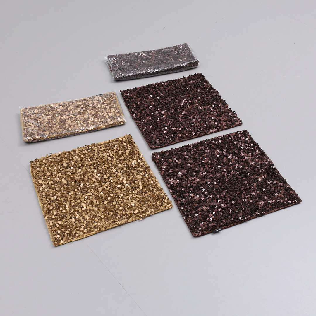 3562821. KUDDFODRAL, 5 st, paljetter, Kamelo.