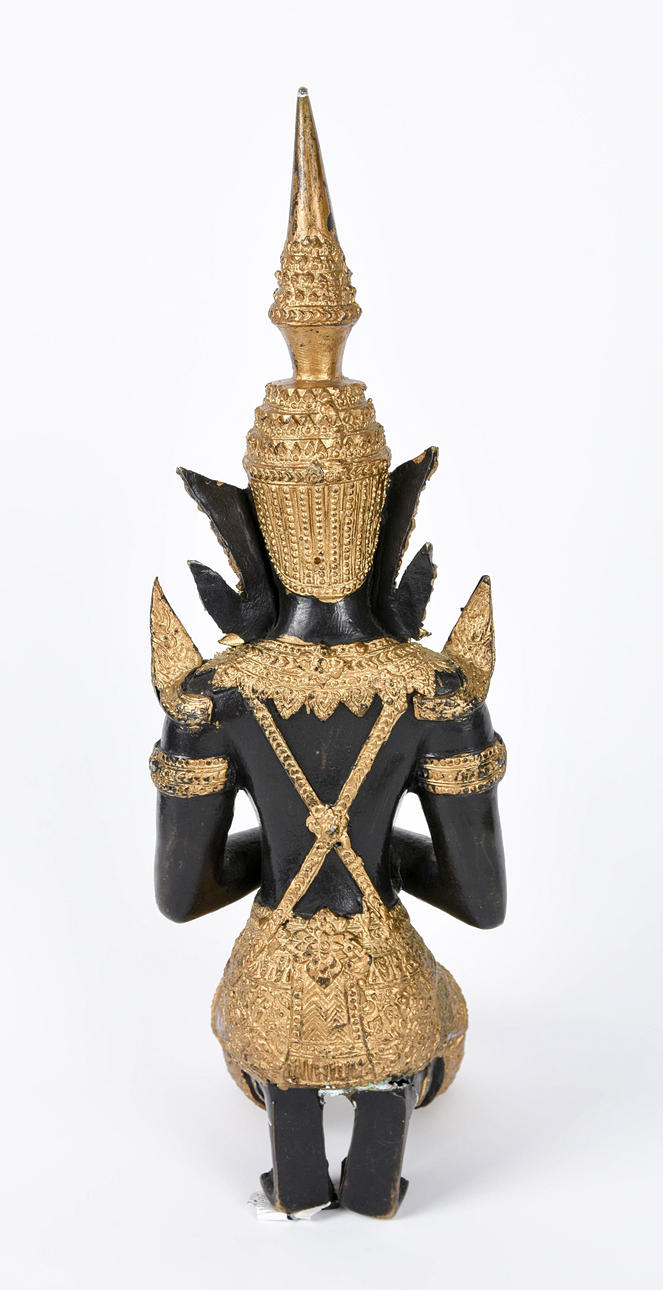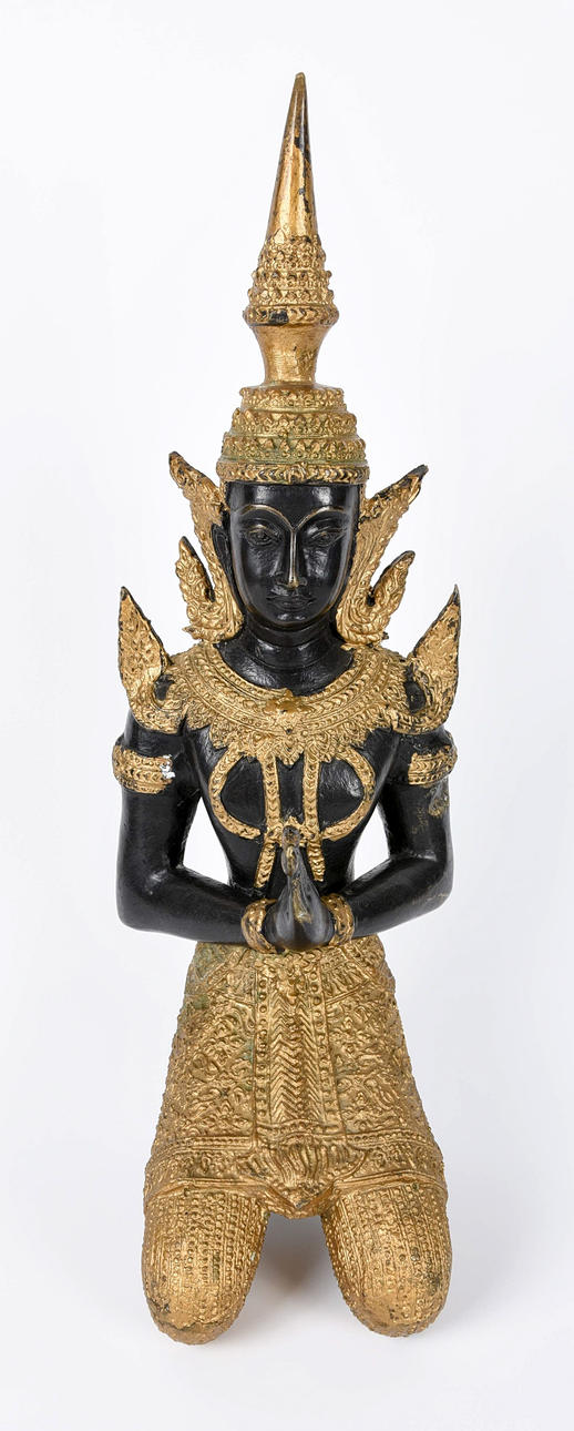 ”TEMPLE GUARDIAN BUDDHAS”, troligen Thailand, statyett i guldmetalllegering. Sittande, i bönhållning.
