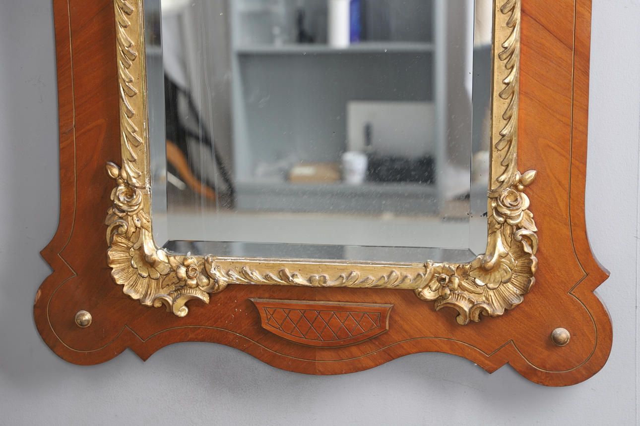 3564359. ANTIK FRANSK VALNÖT & FÖRGYLLD SPEGEL.