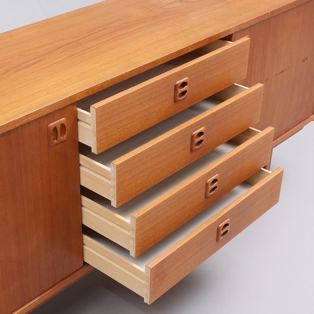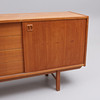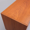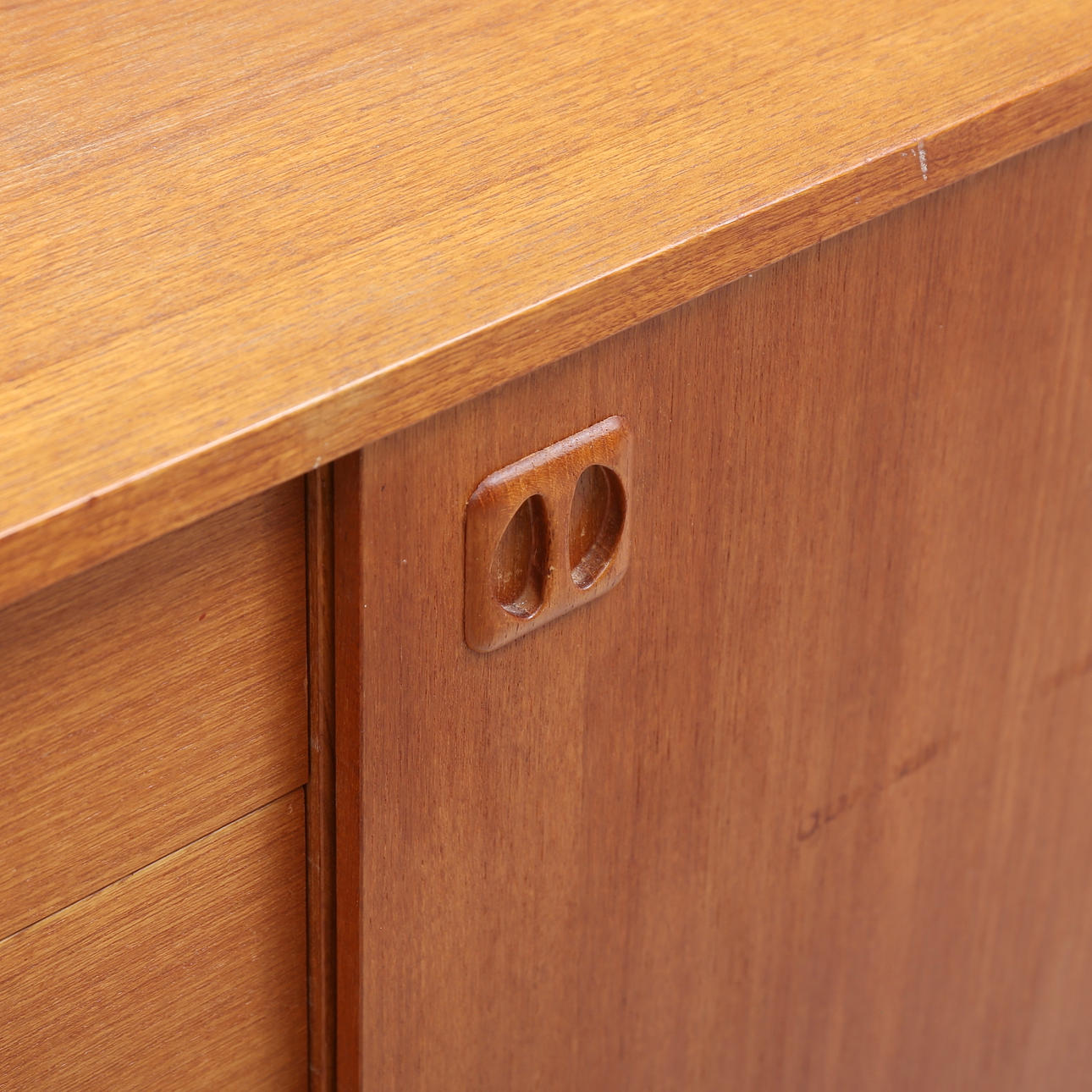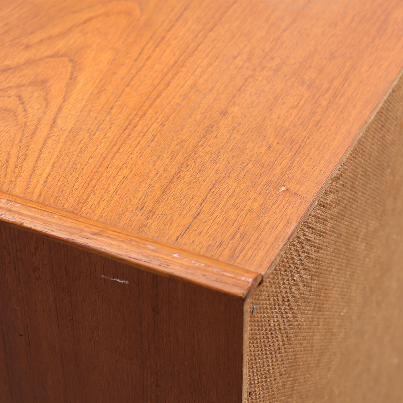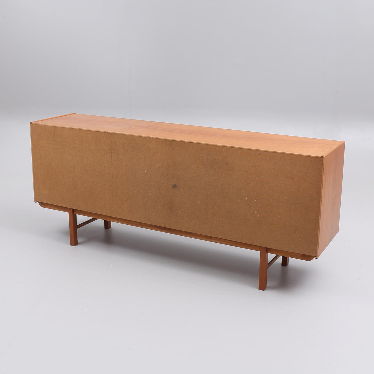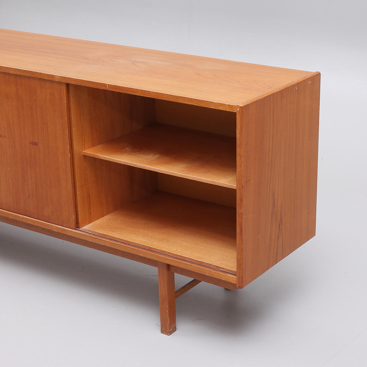 Märken, repor, fläckar. Större märke på högra skåpet. Minimala fanérskador på gavlar.
