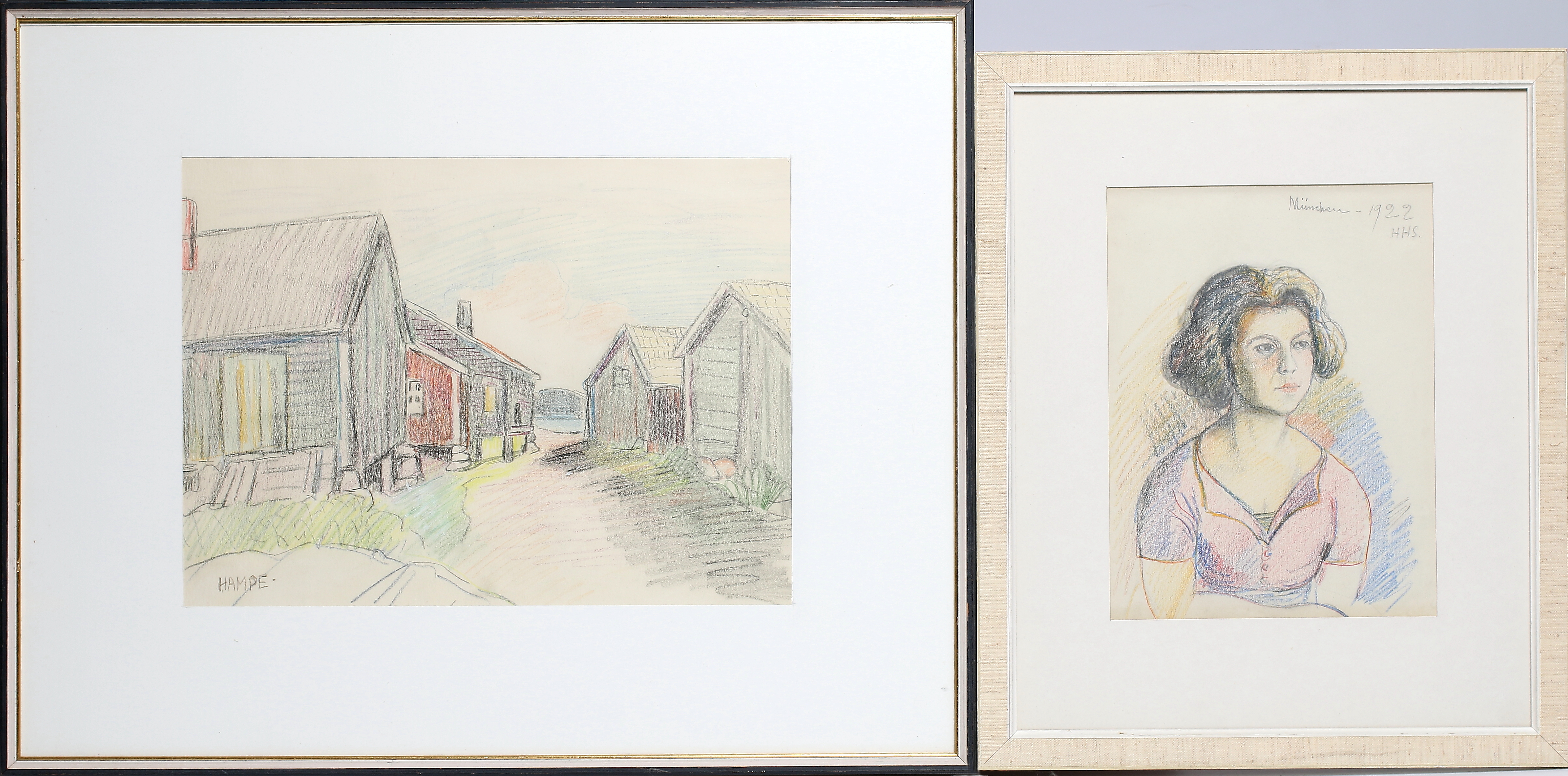 356710. HANS HALVDAN "HAMPE" SVANBERG. 2 st, krita på papper. Signerade bl.a. 1922.