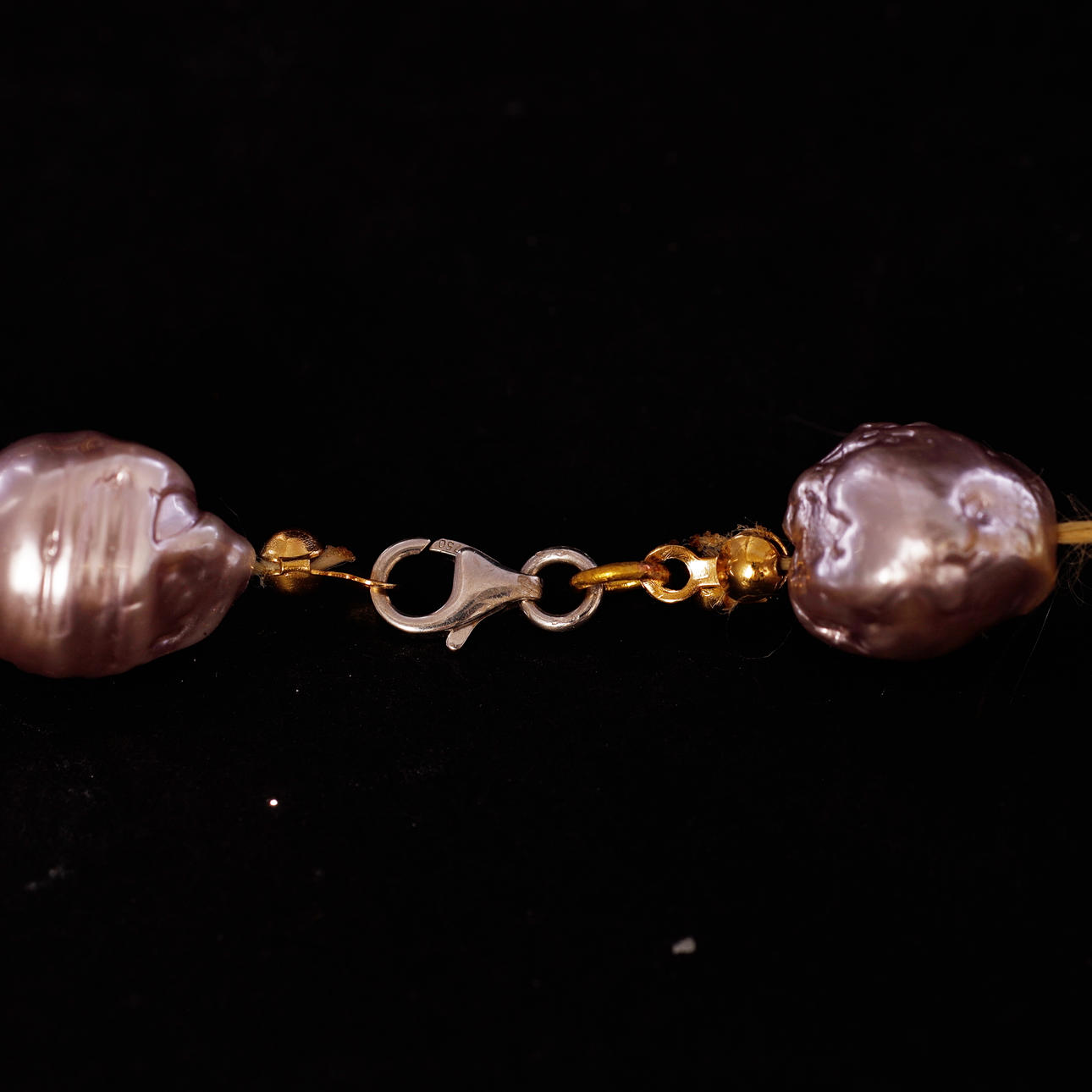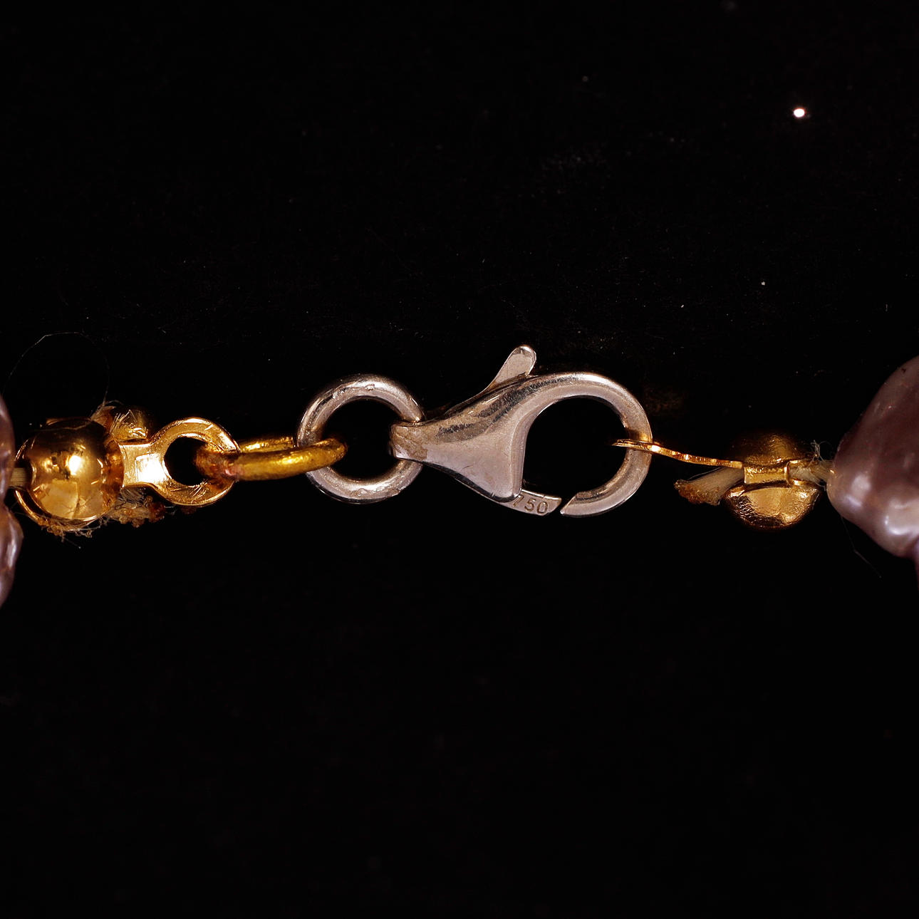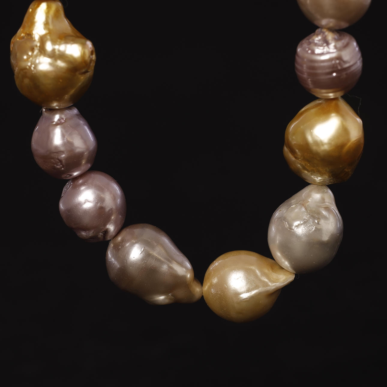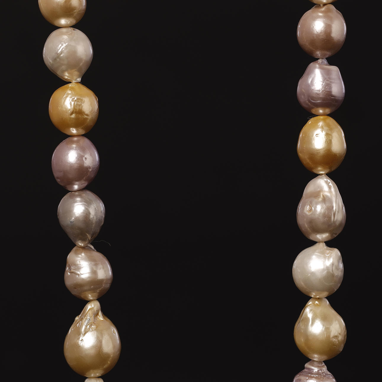 Collieres med färgade barockpärlor. Lås av 18 kt vitguld, 'guldmetall' montering 12 mm - 22 mm. Vikt 136 gr.