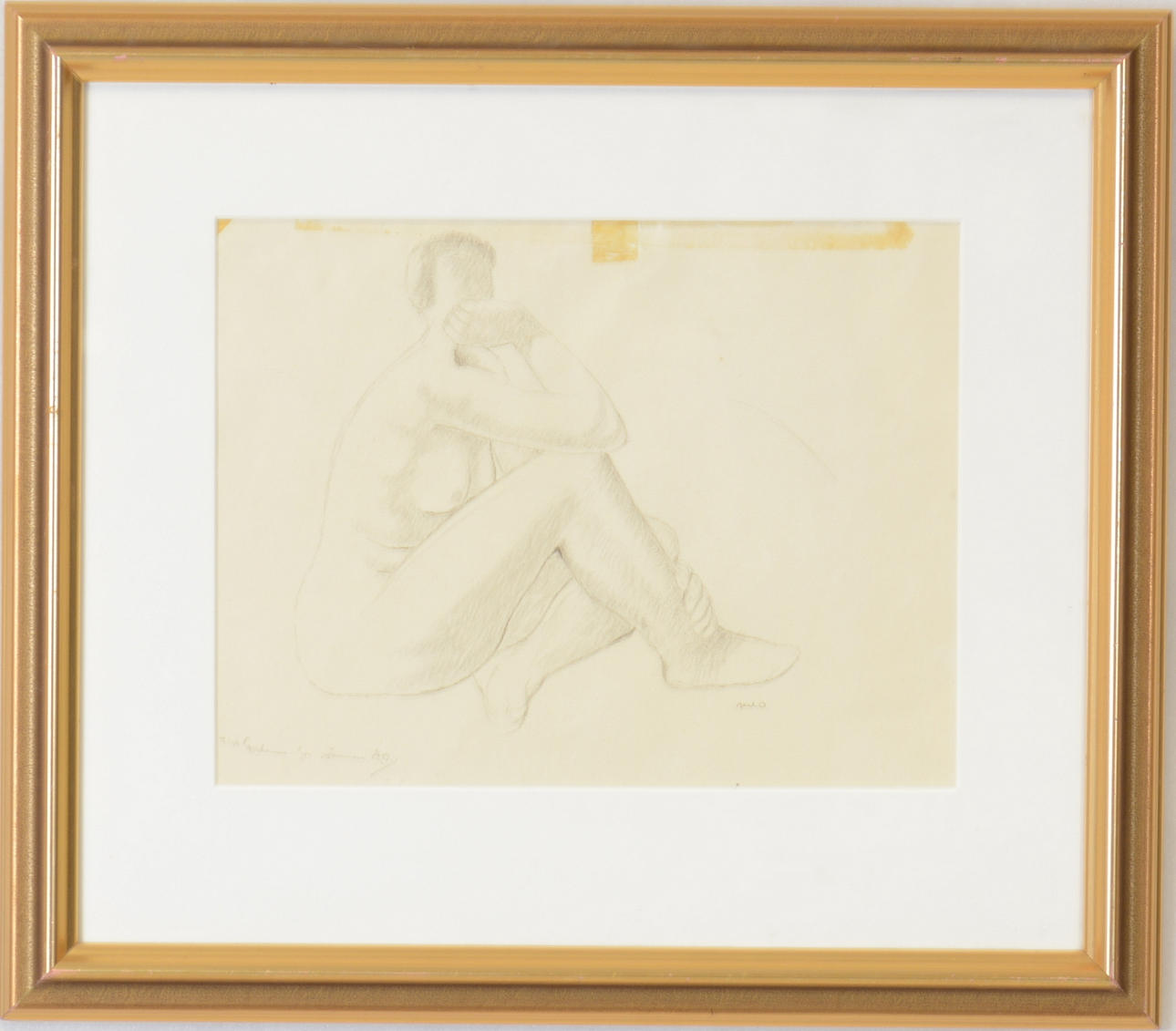 Sittande kvinna. Signerad med dedikation. 19x21 cm.