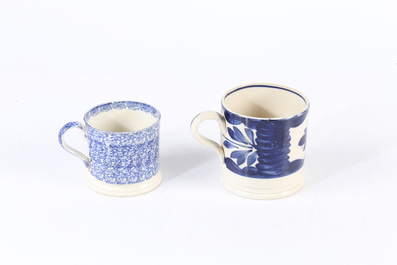 3571740. MUGGAR, 2 ST, HANDMÅLADE, 1800-TAL.
