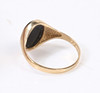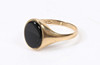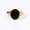 Ovalt onyxbord mäter 11,5 x 9,5 mm. Stämplad ”JT, 375, Birmingham, 1989”. Fingerstorlek S. Vikt 2,4 g.