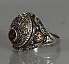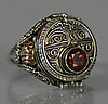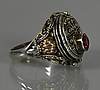 Ring i 925 silver, guldpläterad på platser med rödfärgad sten.